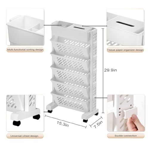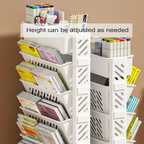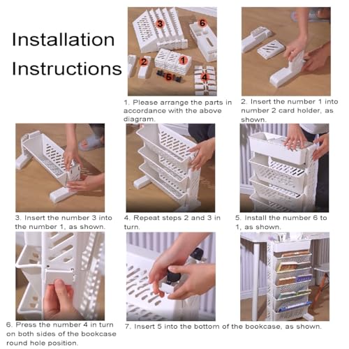 6 Tier Rolling Bookshelf, Utility Book Rack Organizer Bookshelves, Mobile Bookshelf with Wheels, Storage Book Cart for Kids Children Students Study in Bedroom Living Room Home School, White