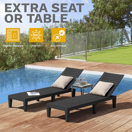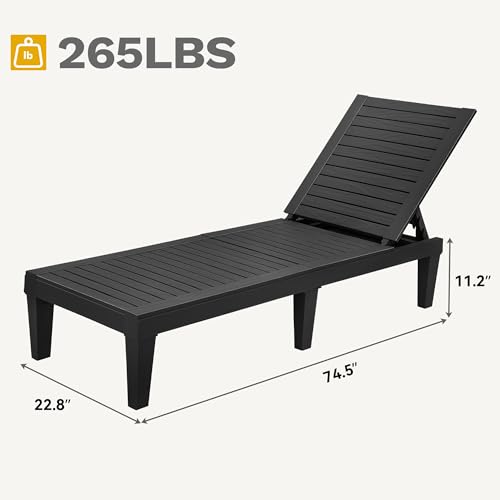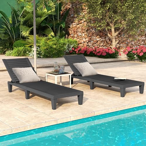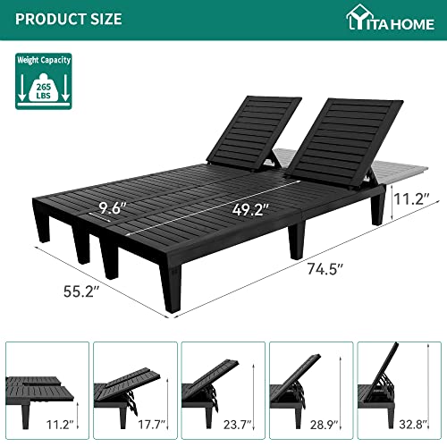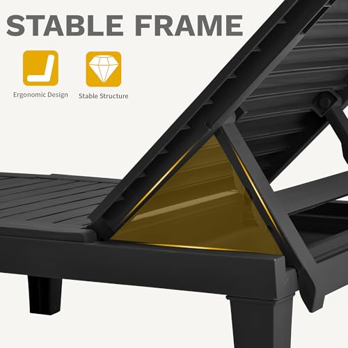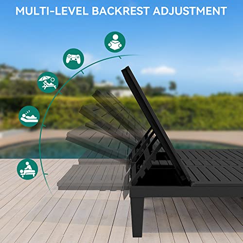 YITAHOME 2-in-1 Outdoor Chaise Lounge Chairs with Adjustable Backrest, Sturdy Loungers for Patio & Poolside, Easy Assembly & Waterproof with 530lbs Weight Capacity, Resin, Set of 2, Black