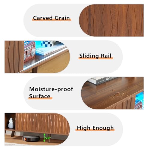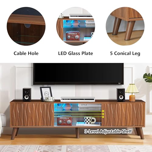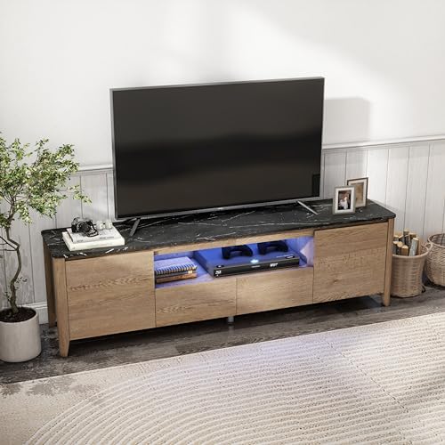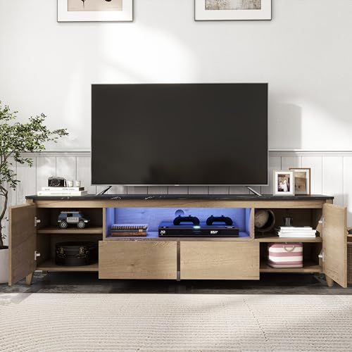 TV Stand for 80 Inch TV, Modern Entertainment Center with LED Lights, Media Console Table with Storage Drawers & Cabinets for Living Room, 70 Inch, Natural Wood Wash