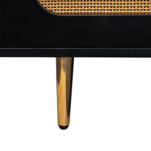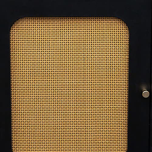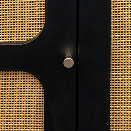 Sideboard Buffet Cabinet with Natural Rattan Doors&Adjustable Shelf, Rattan TV Stand, Rattan Entertainment Center Console Table Accent Cabinet for TV's up to 55” for Living Room (57”, Wood)