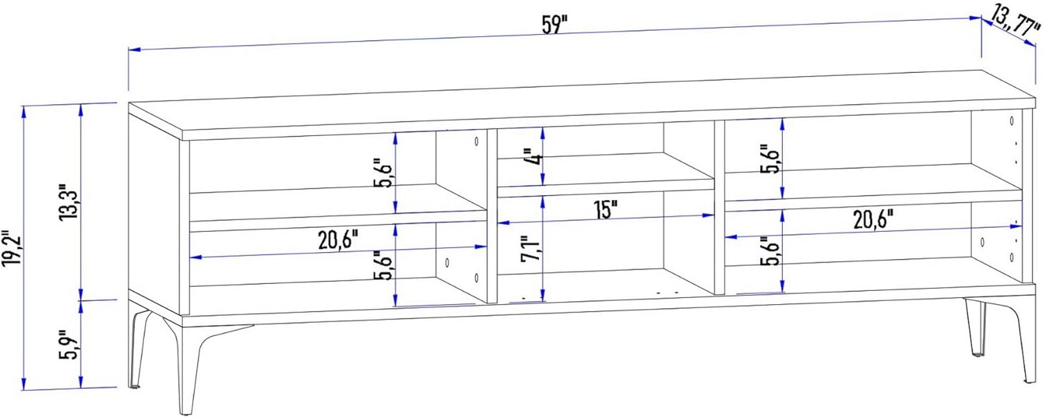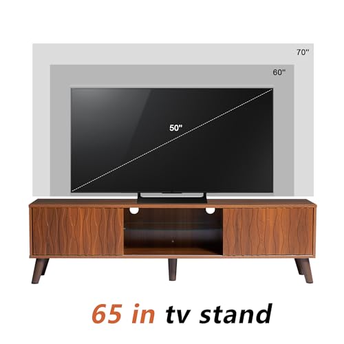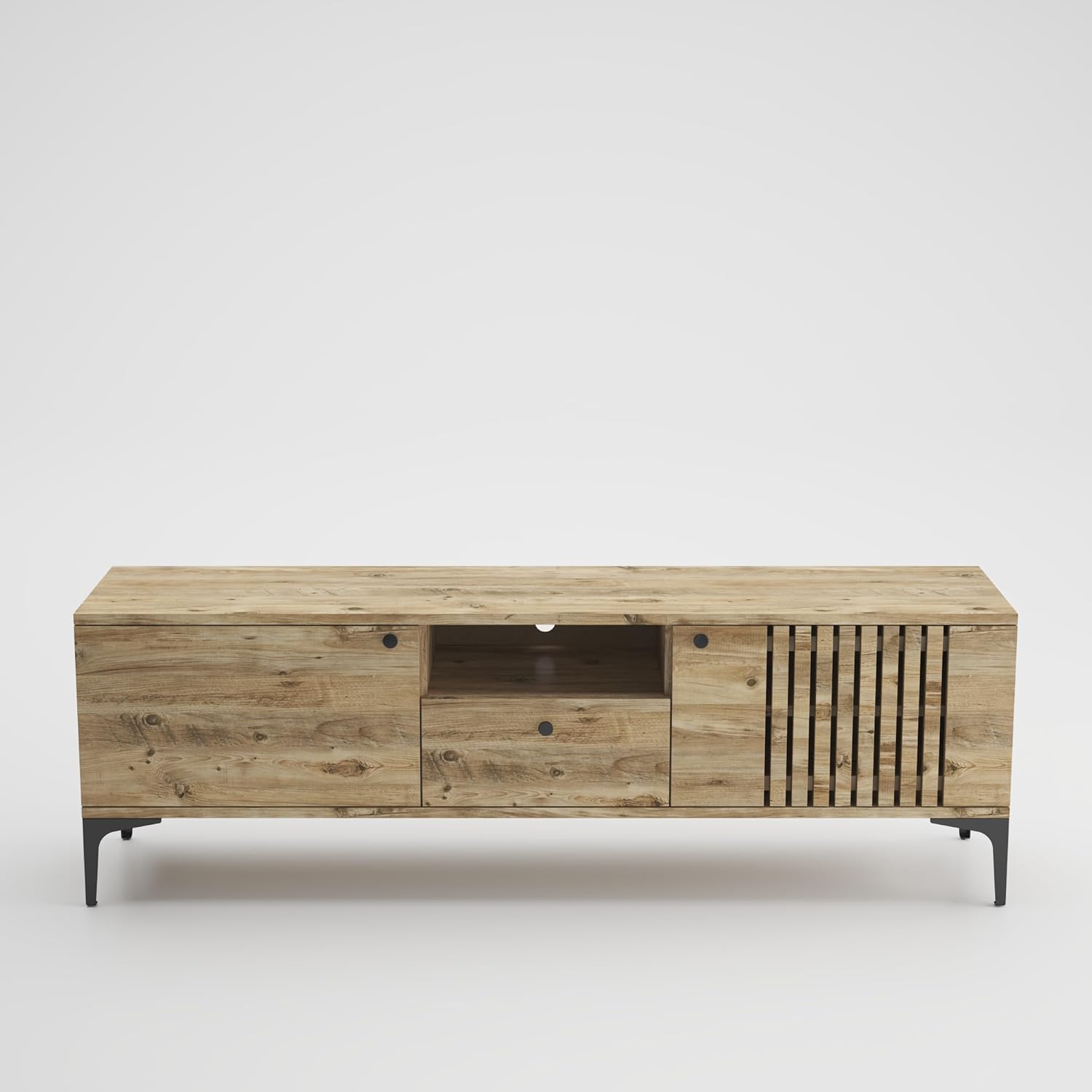 DECOHAUS Nova Modern TV Stand & Media Console for TVs up to 65", Entertainment Center with Storage, Modern Design, Fluted Doors, 59" Wide, 3 Doors, TV Stand for Living Room, Metal Legs, Natural Look