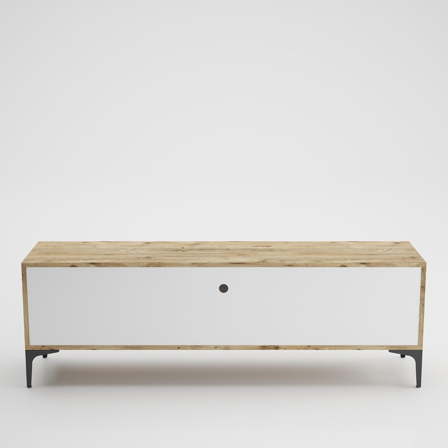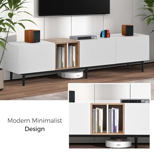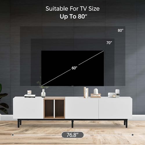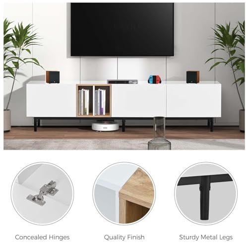 Media Console TV Stand for TVs Up to 80'', Entertainment Center with Door Rebound Device, TV Cabinet for Living Room, Bedroom White+Natural MDF+Metal