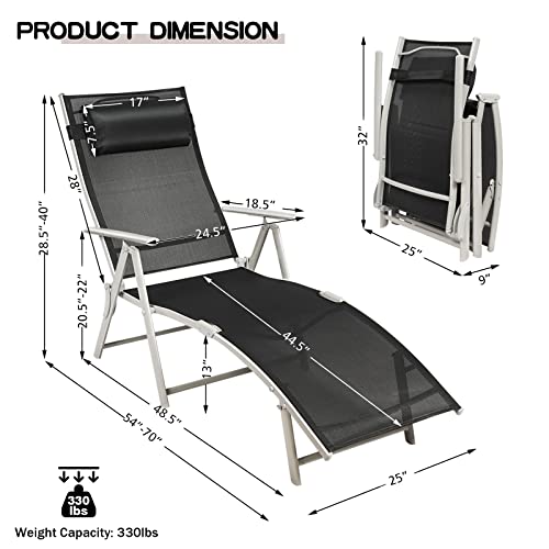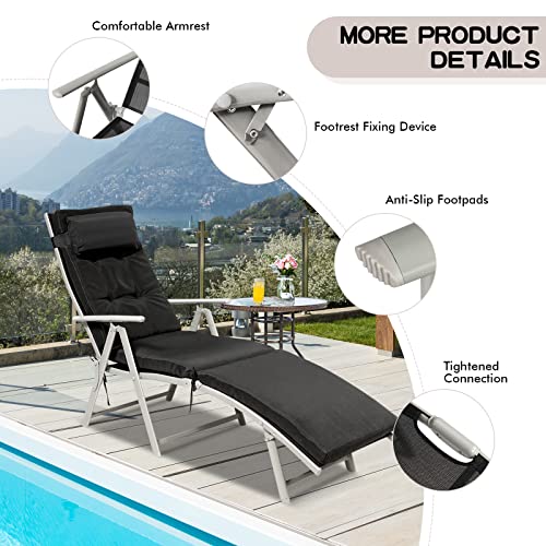 Giantex Chaise Lounge Chair for Outside, Pool Folding Reclining Beach Chair W/Removable Cushion&Headrest Pillow, Outdoor Lounge Chaise w/ 7 Backrest Positions, Portable Patio Lounger (1, Black)