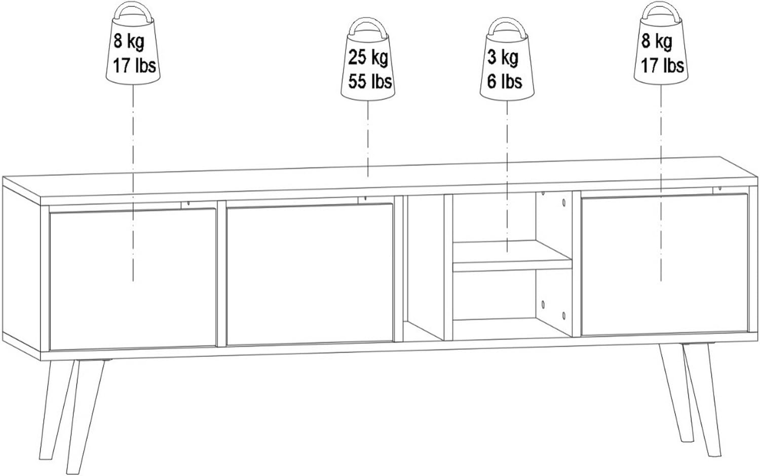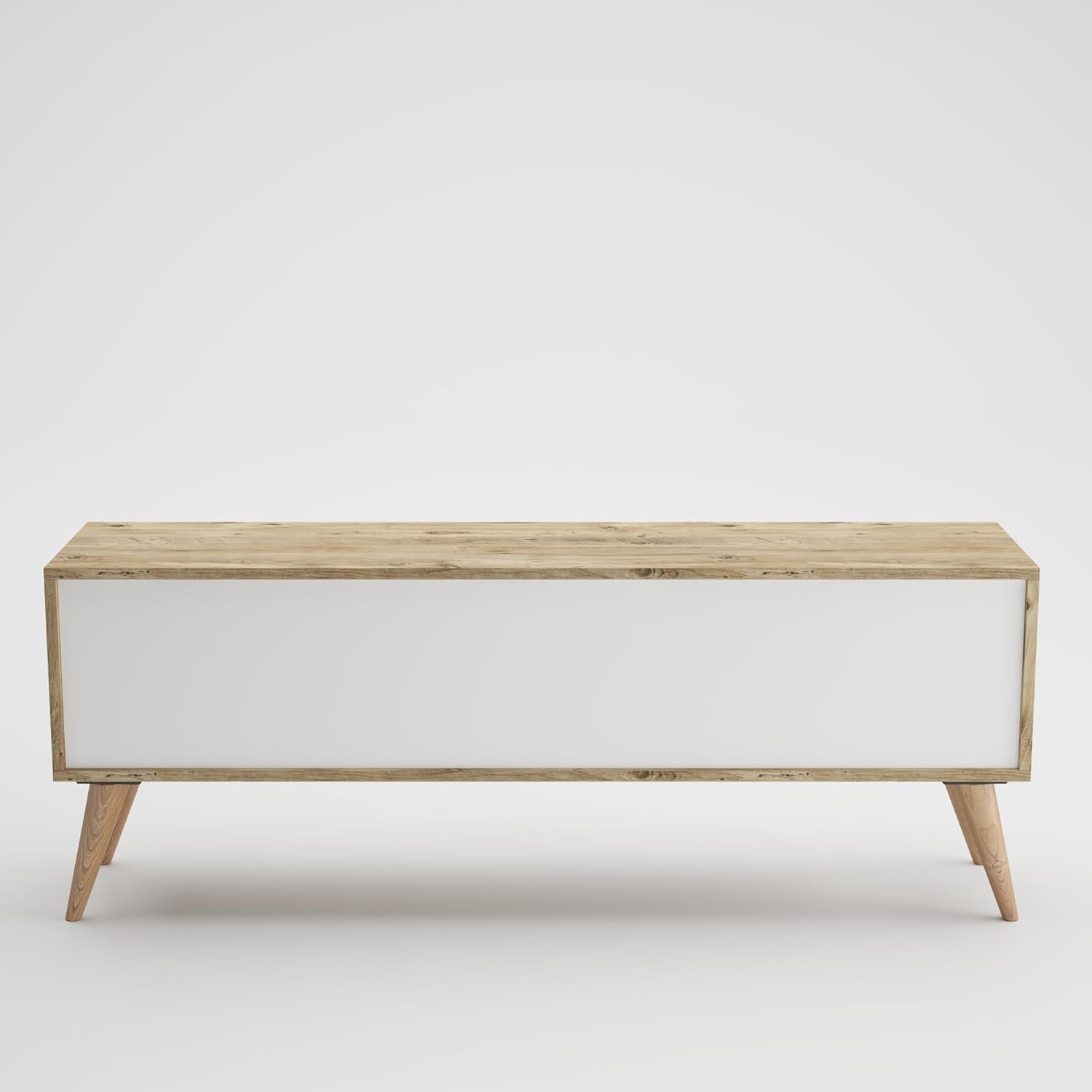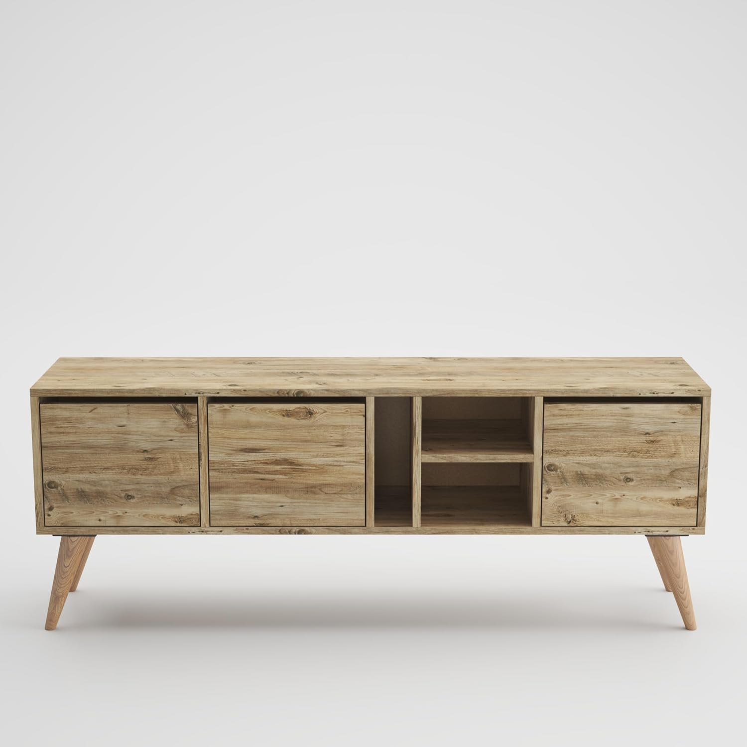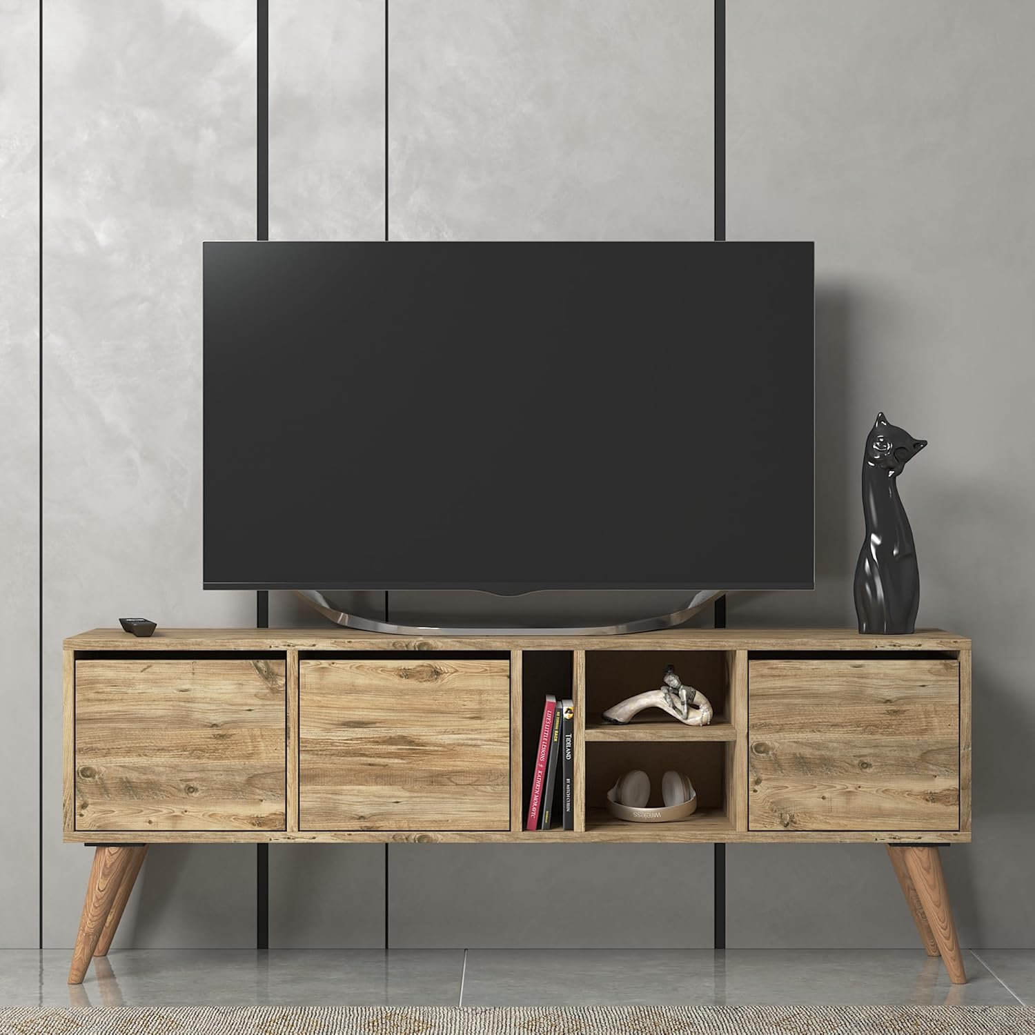 DECOHAUS Mykonos Modern TV Stand & Media Console for TVs up to 65", Entertainment Center with Storage, Modern Design, 59" Wide, 3 Doors, 2 Shelves, TV Stand for Living Room, Wooden Legs, Natural Look