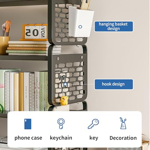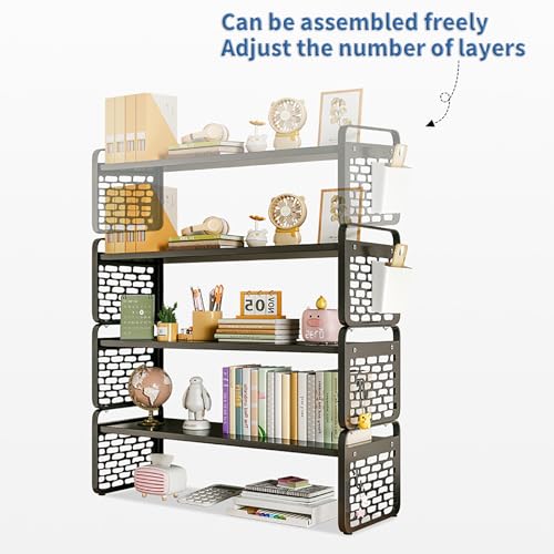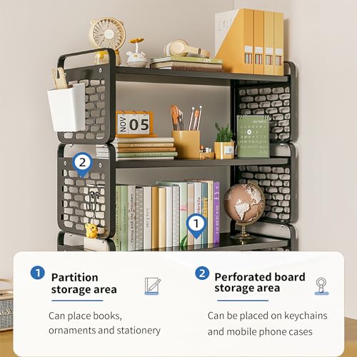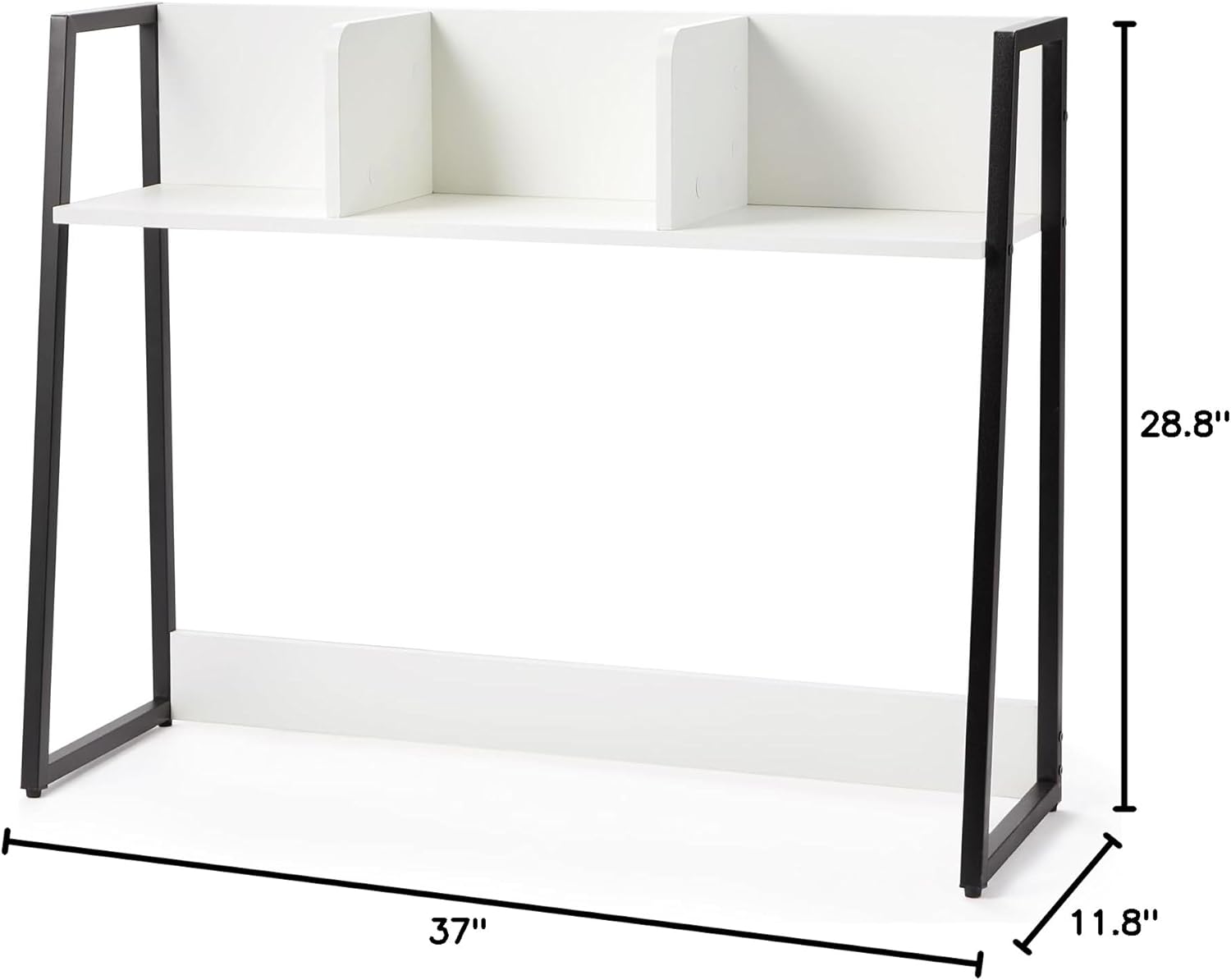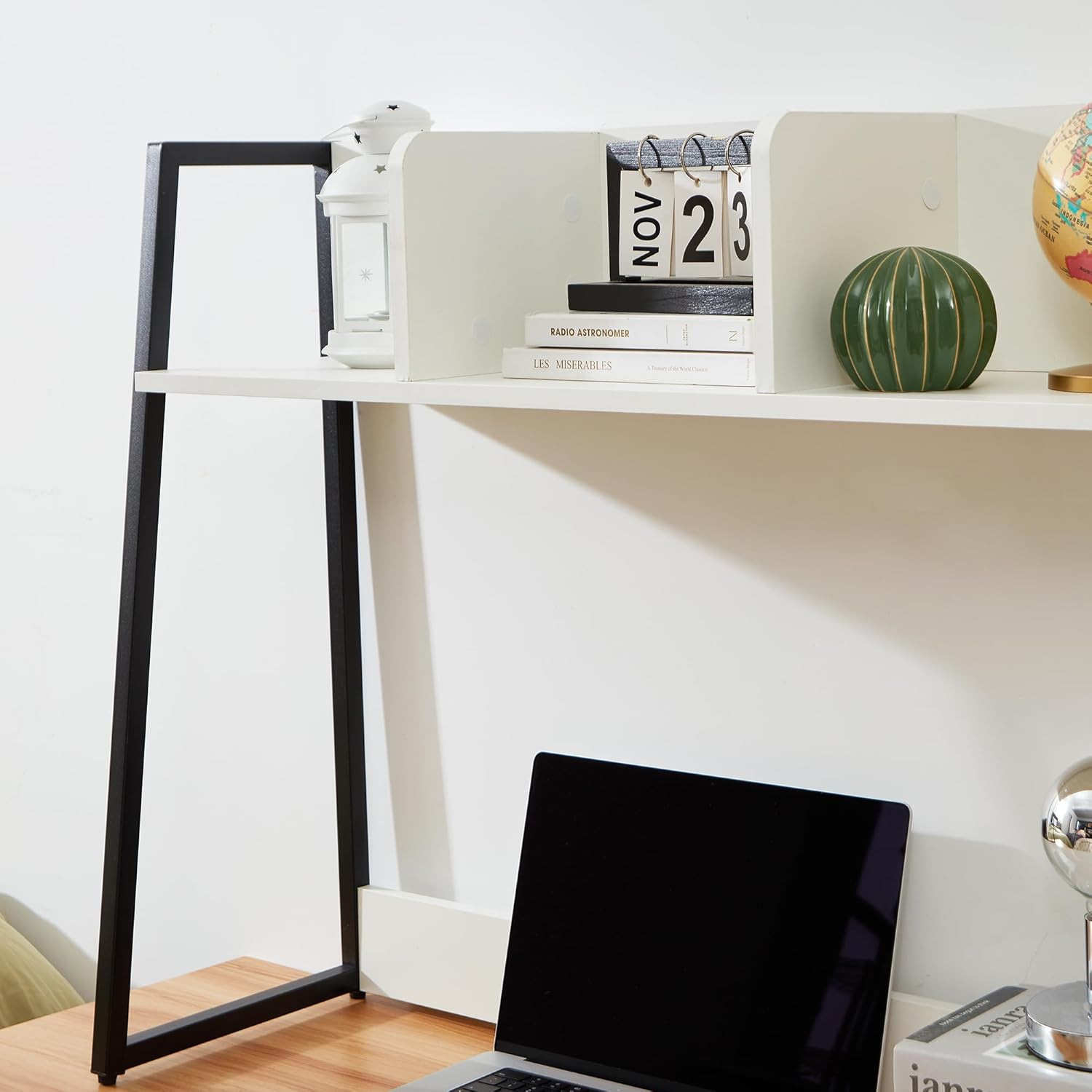 3 Tier Desk Hutch Desktop Bookshelf Organizer Desk Hutch Top Only Computer Desktop Bookcase Countertop Storage Hutch Display Rack Table Top Shelves for Desk,White,2 Tier