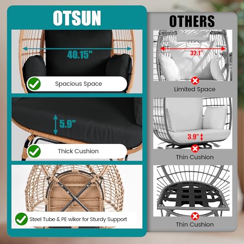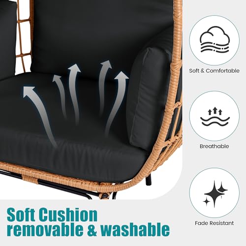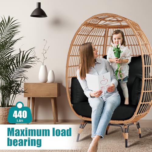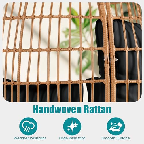 Outdoor Egg Chair, PE Wicker Chair with 4 Thicken Cushions, Patio Chairs 440 lbs Capacity, Oversized Balcony Chairs with Durable Steel Frame Perfect for Balcony, Backyard, Bedroom-Dark Black