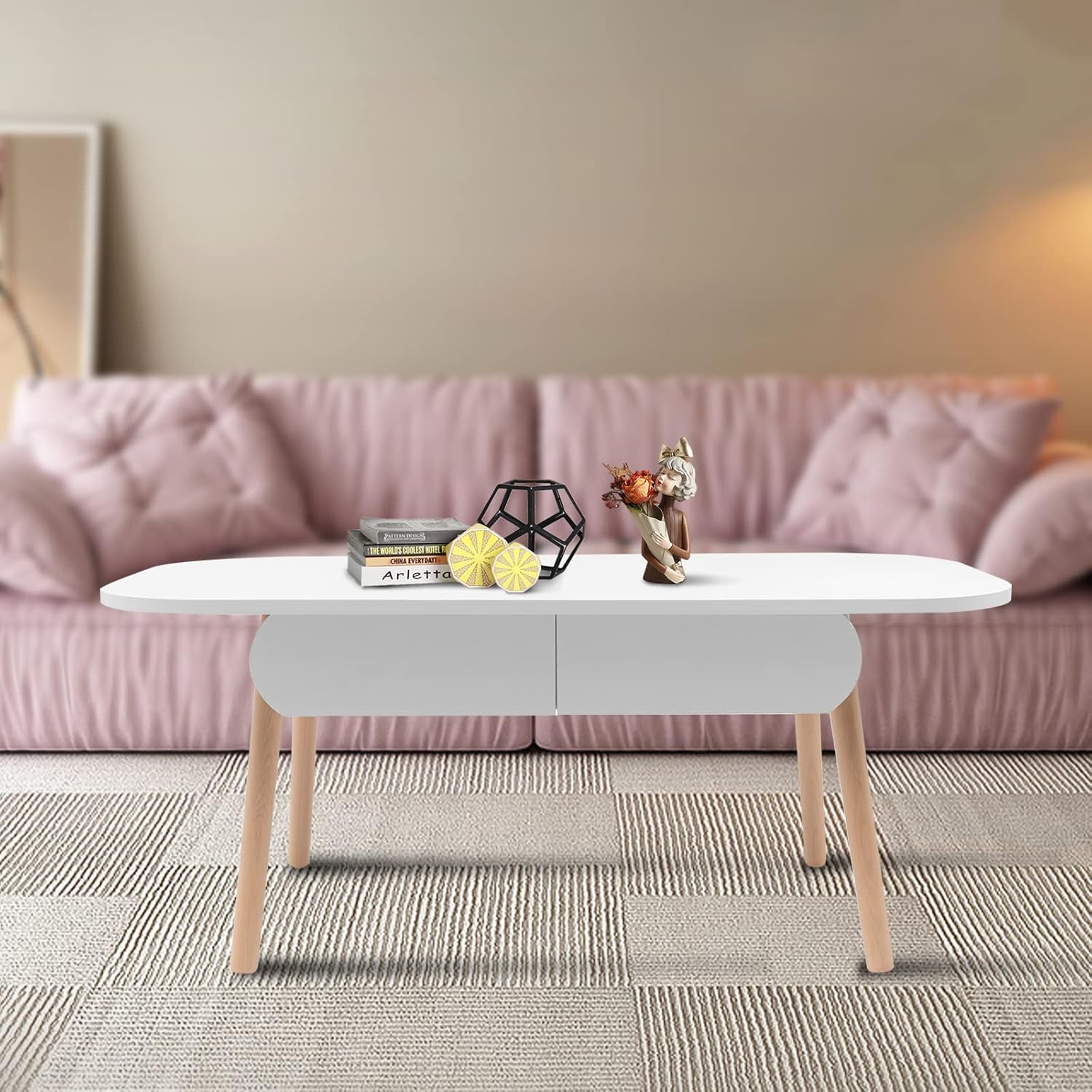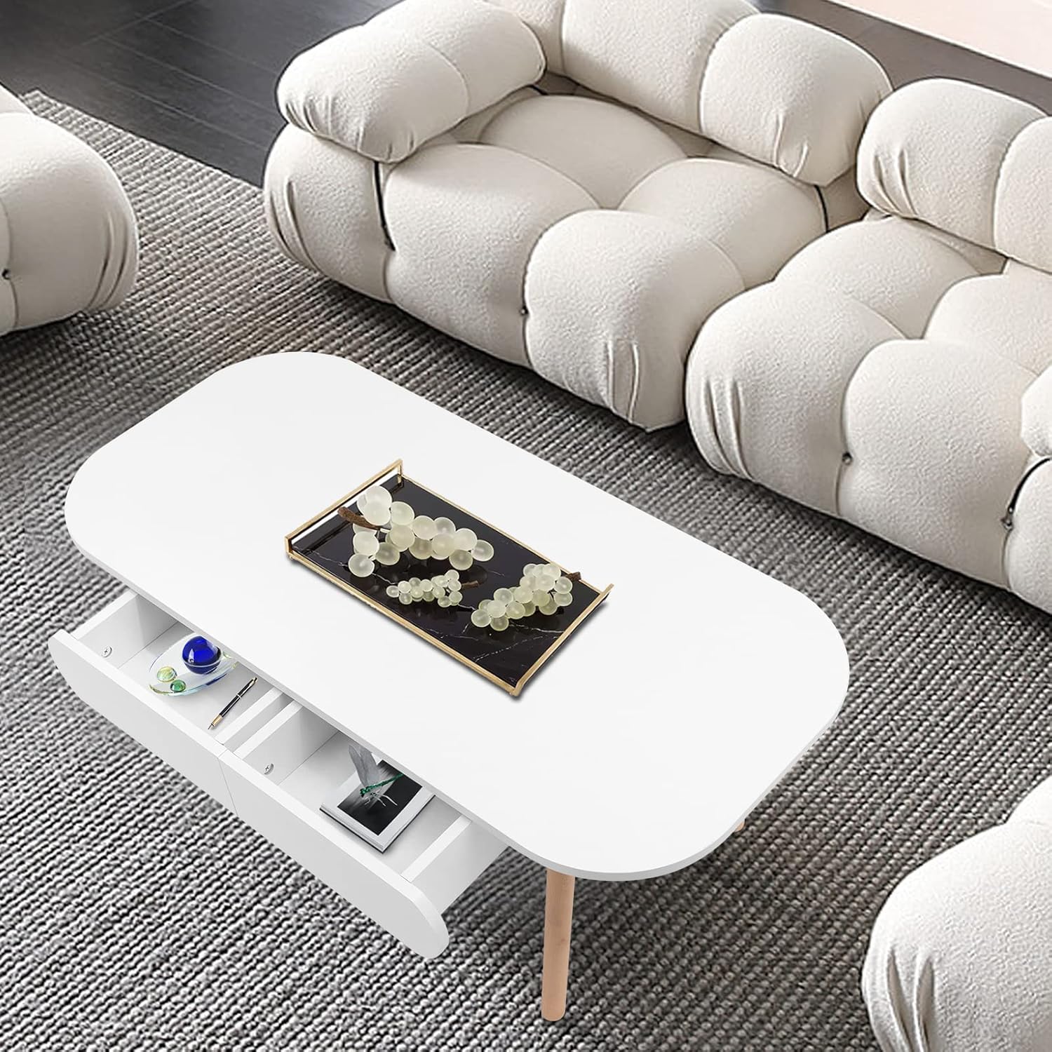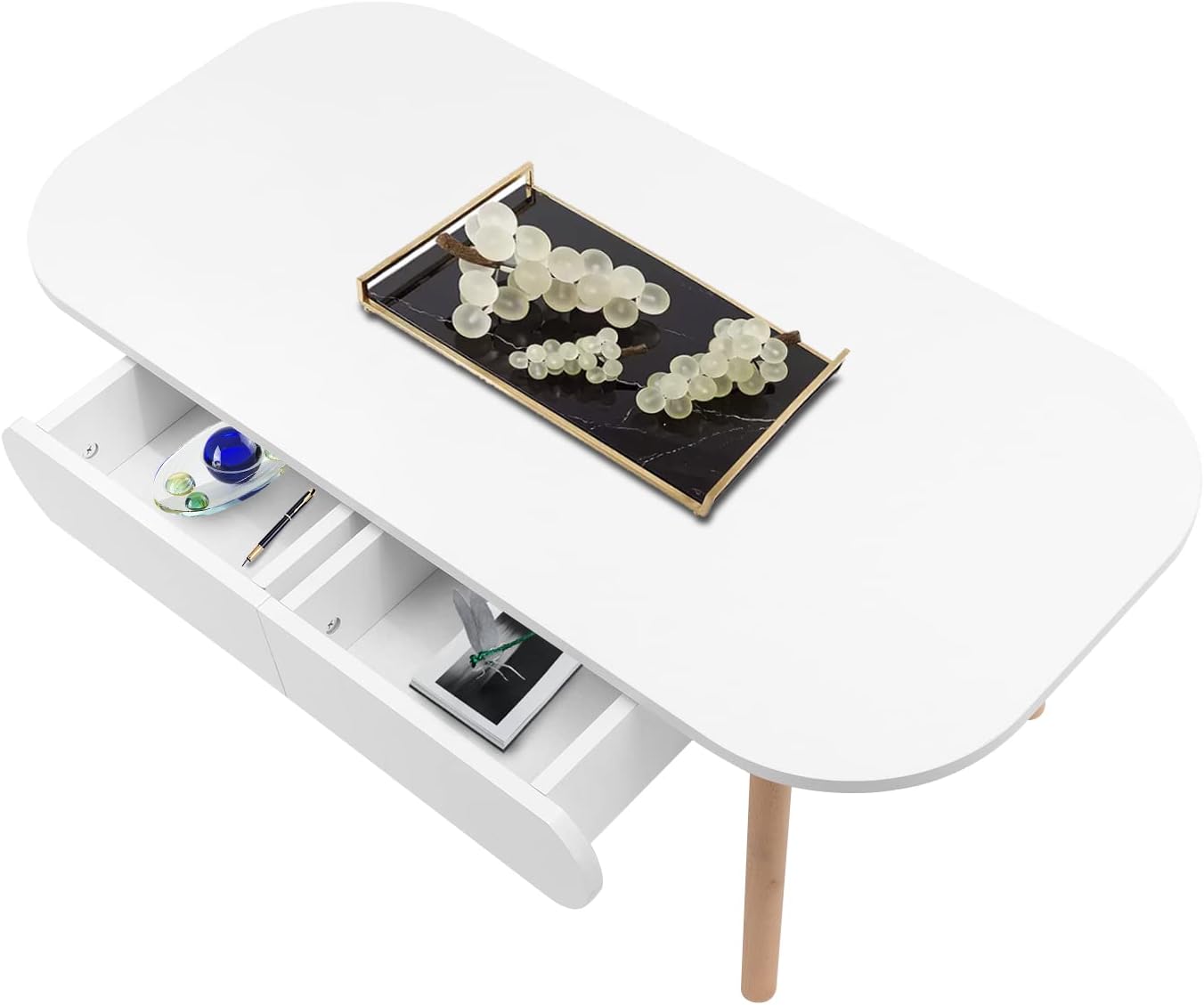 Gdrasuya10 White Oval Coffee Table with 2 Drawers, MDF Coffee Table with Storage Tea Table Living Room Table Household Sofa Table (40 inch Length)