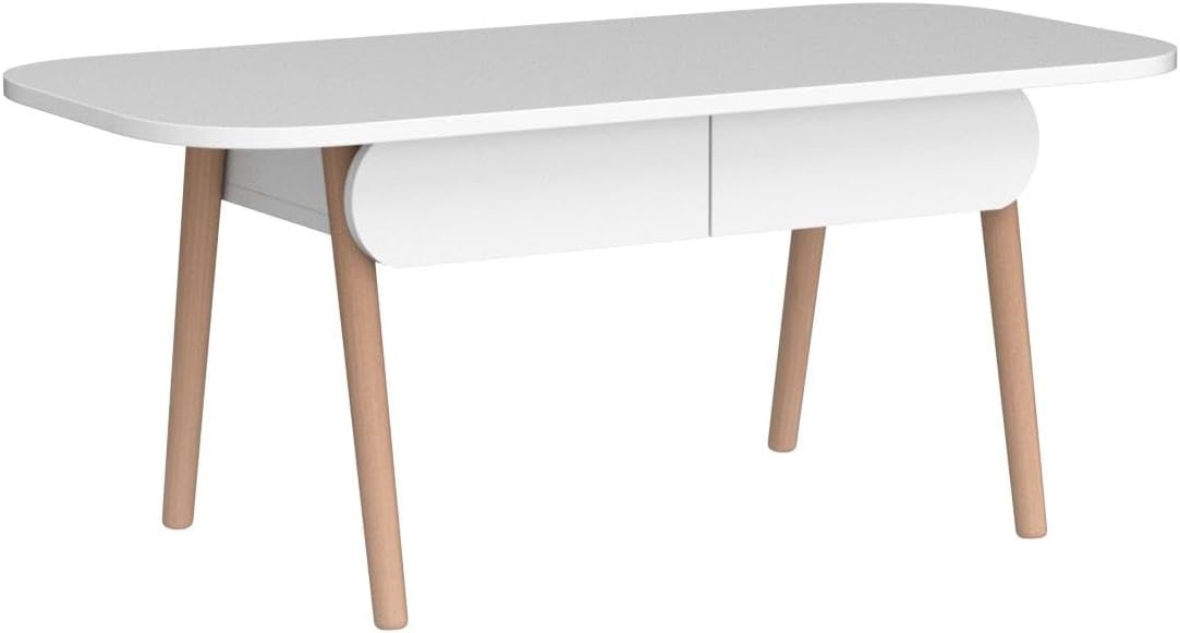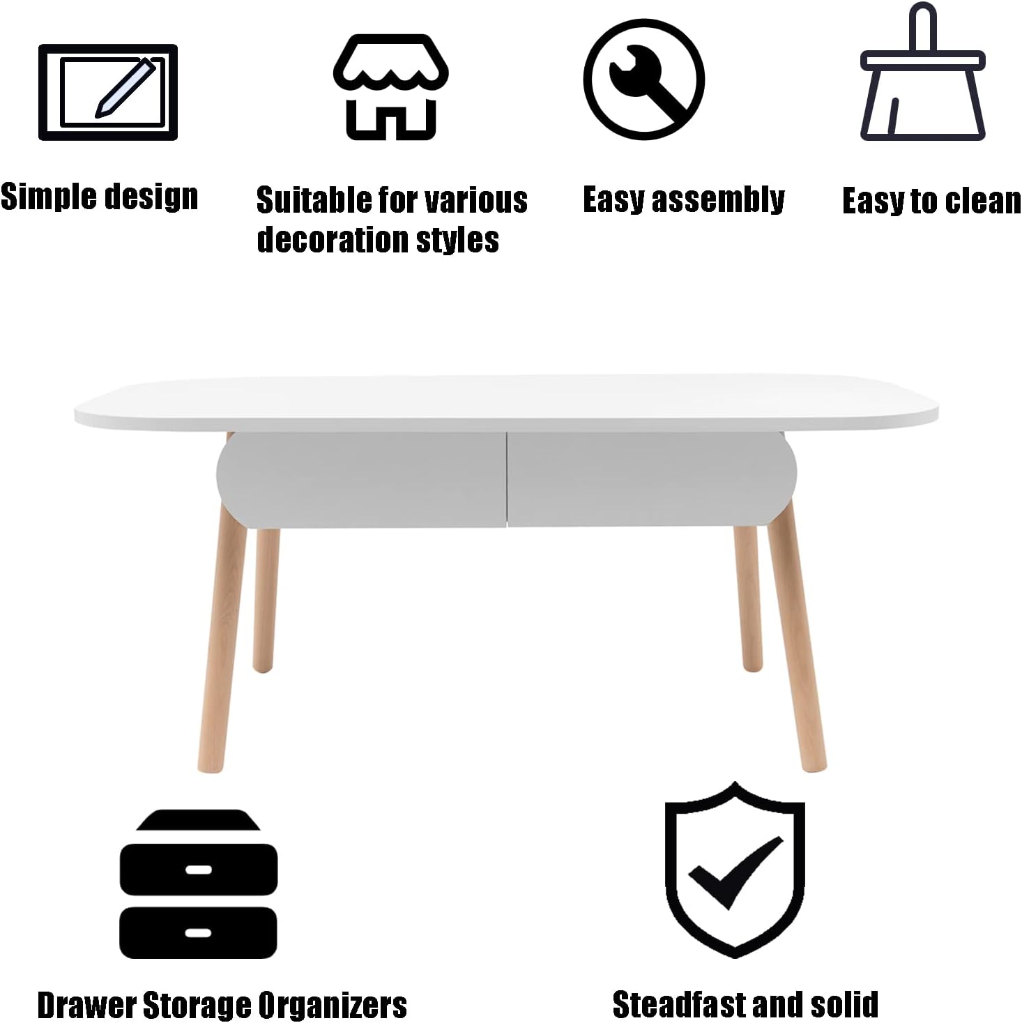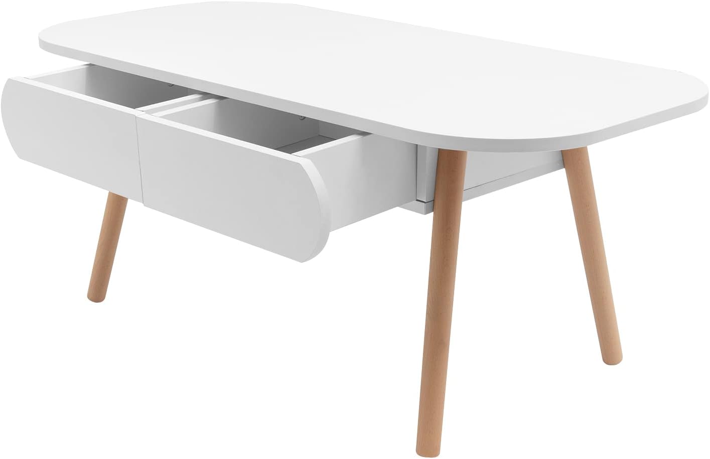 Gdrasuya10 White Oval Coffee Table with 2 Drawers, MDF Coffee Table with Storage Tea Table Living Room Table Household Sofa Table (40 inch Length)