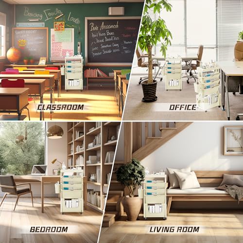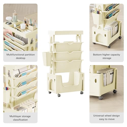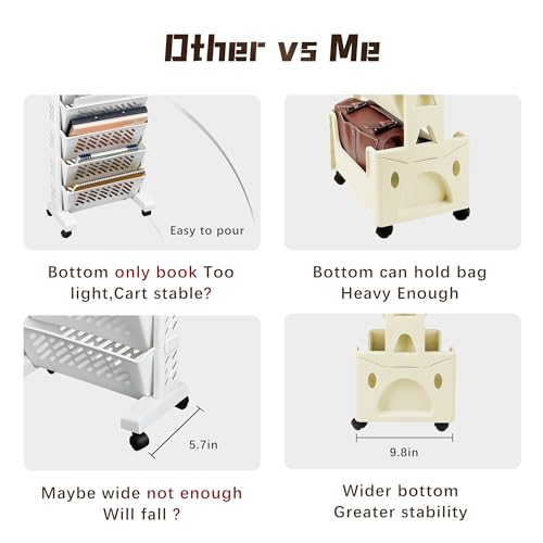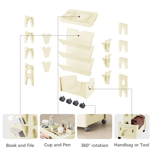 5-Tier Mobile Bookshelf Cart, Stable Removable Bookshelf With Wheels, Movable Book Rack Storage Bookcase Organizer, Kids Bookshelf Carts For Living Room Classroom Office Kitchen, Easy Assemble, Khaki