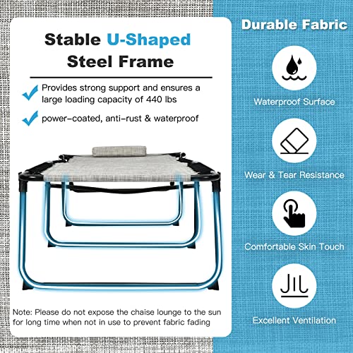 GYMAX Lounge Chair for Outside, 440lbs 27” Oversize Folding Beach Tanning Sunbath Chair with Adjustable Backrest & Removable Pillow, Lightweight Portable Patio Lounger for Lawn Poolside (1, Black)