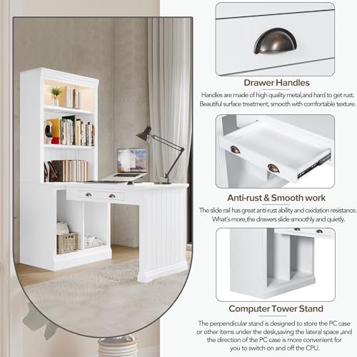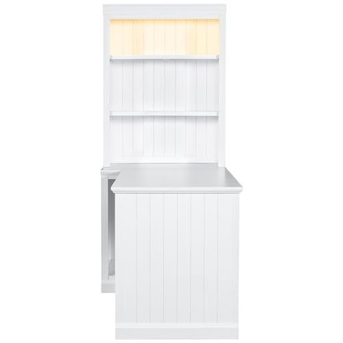 Dorm Room Desk Hutch, Wooden Desk Hutch Desk Organizers, Bookshelf and Accessories Storage Display Rack in Home Office Dorm, Freestanding Desk Shelf, 70*20*70cm, White