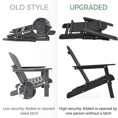 Yaheetech Folding Adirondack Chair Set of 5 Outdoor, 300LBS Solid Wood Garden Chair Weather Resistant, Fire Pit Lounge Chairs for Garden/Yard/Patio/Lawn, Black