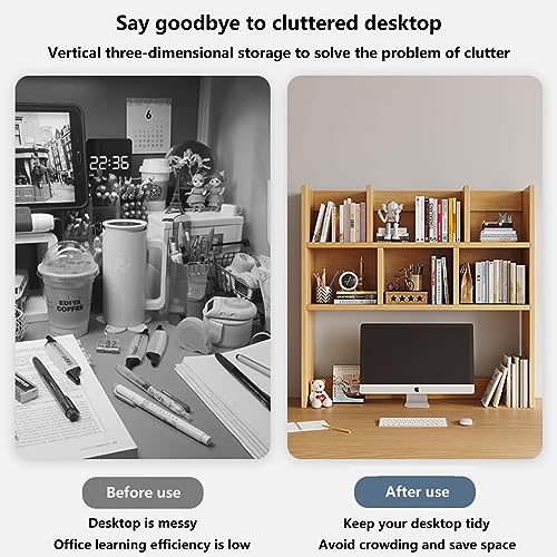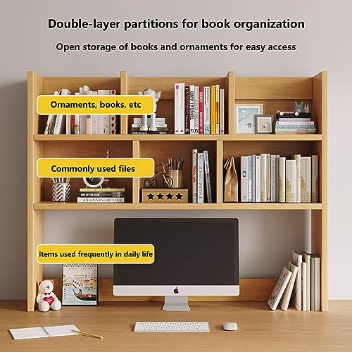 Computer Desktop Bookcase, 2-Tier Desk Hutch, Multipurpose Countertop Storage Hutch, Adjustable Wood Rack Organizer for Home Dorm Office Supplies