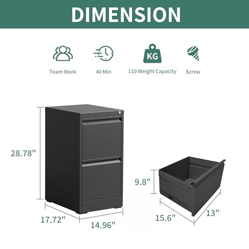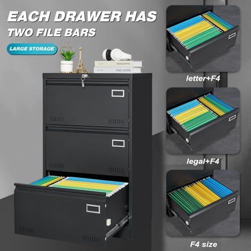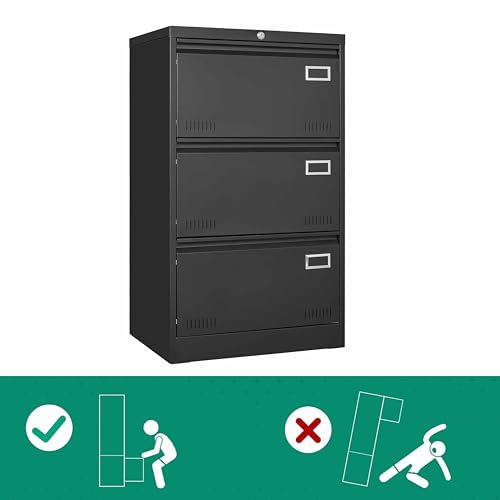 3 Drawer File Cabinet with Lock, Vertical File Cabinet for Home Office,Heavy Duty Metal File Storage Cabinet for Letter/Legal/A4/F4 Size File,Easy Assemble (Black, Vertical 3 Drawer)