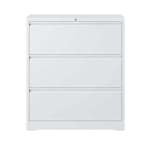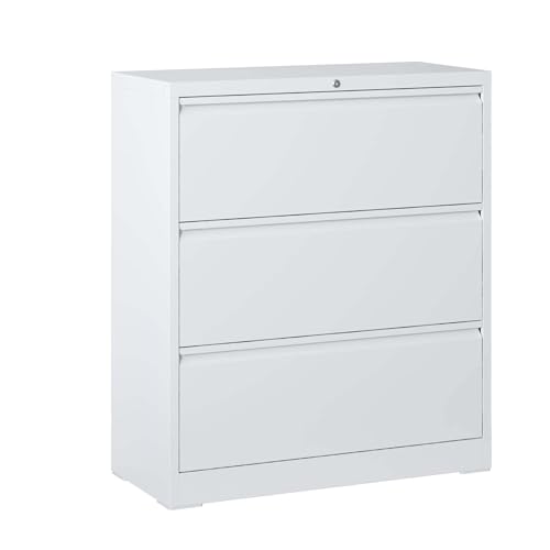 Lateral File Cabinet with 3 Drawer, Printer Stand, Lockable File Cabinet for Home Office, Metal Filing Cabinet with Lock for Legal/Letter/ A4/ F4 Size (White)