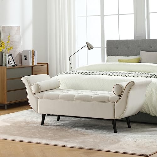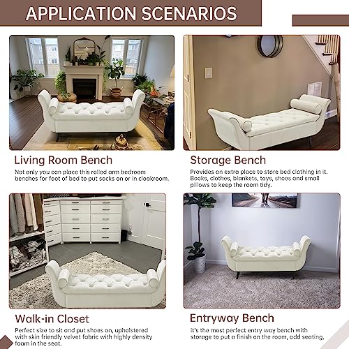 Black Storage Bench for Bedroom End of Bed Bench King Size, 65 inch Long Modern Velvet Tufted Upholstered Window Ottoman Benches with Arm Bedroom Benches with Storage and Seating for Entryway