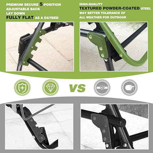 KingCamp Lounge Chairs for Outside, Folding Adjustable Patio Chaise Lounges for Pool, Beach, Sunbathing, Deck, Lawn, Portable Heavy Duty Lay Flat Reclining Foldable Camping Cot for Outdoor with Pillow