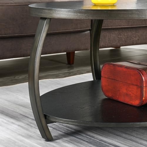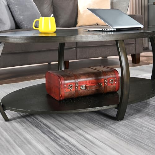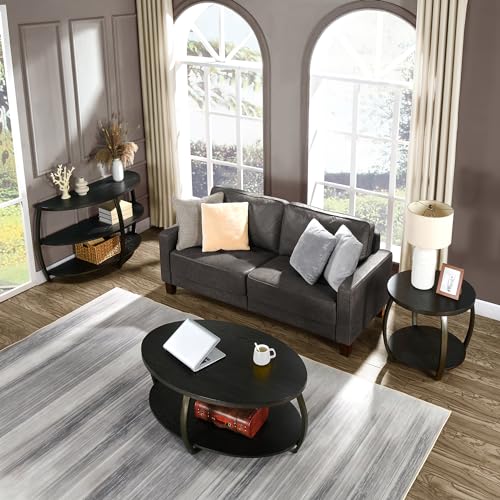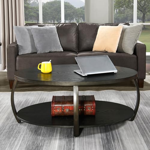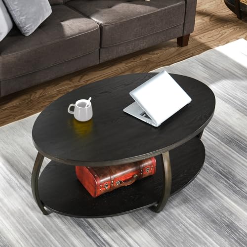 MODERION Oval Coffee Table with Storage Shelf, Industrial Center Tea Table with Metal Legs, 2-tier Farmhouse Side Sofa Table, Accent Furniture, Easy Assembly for Living Room, Black KFZ2439DK