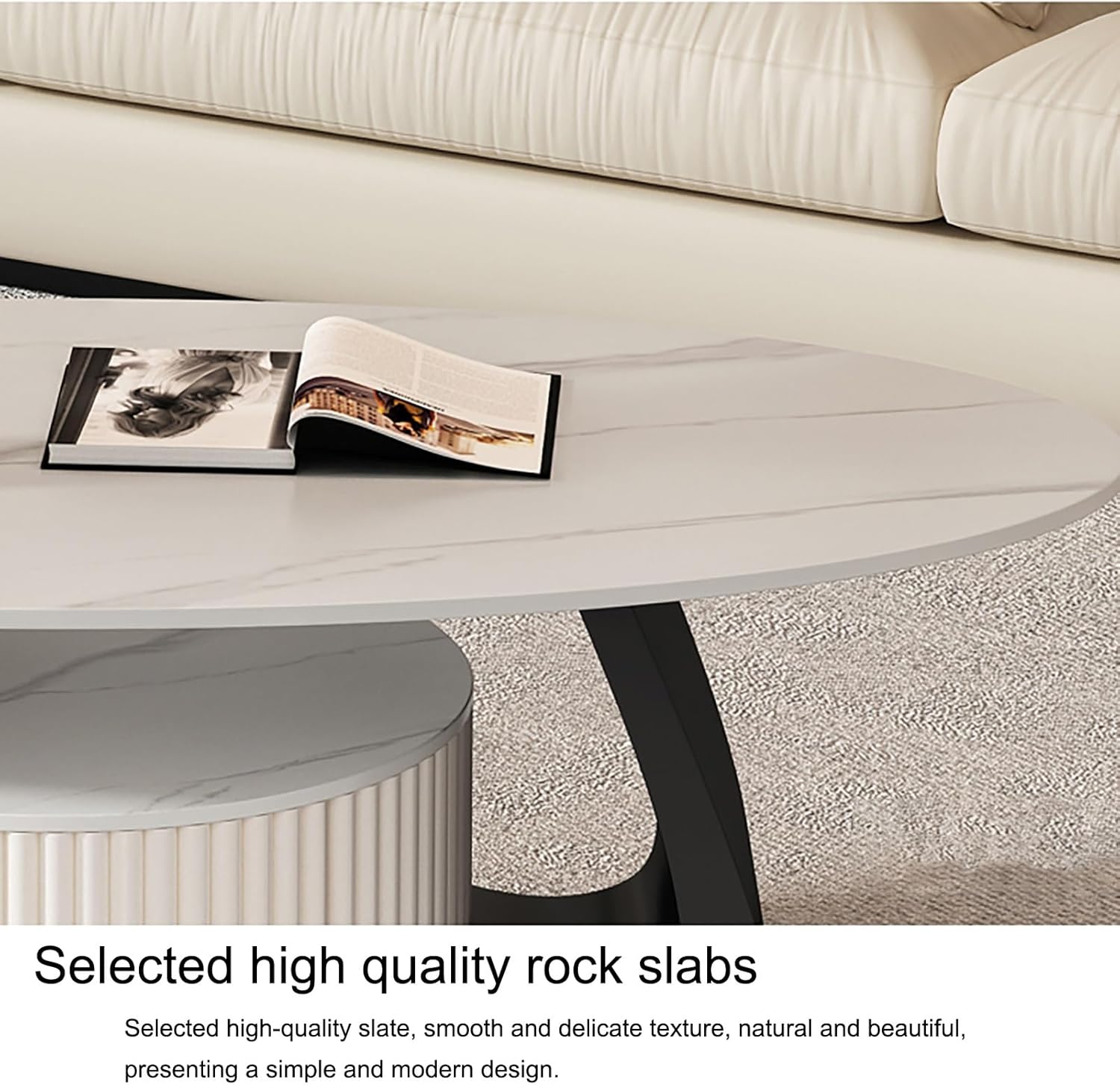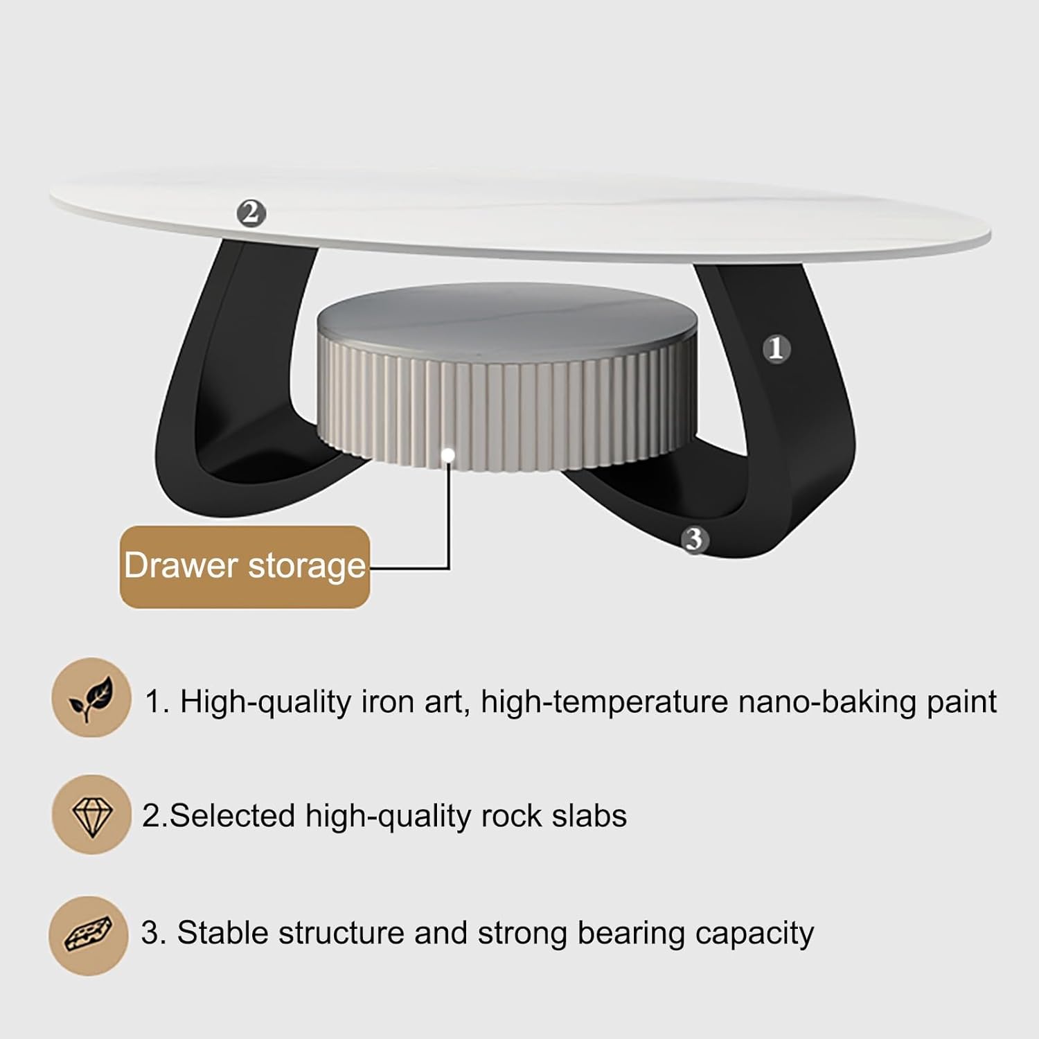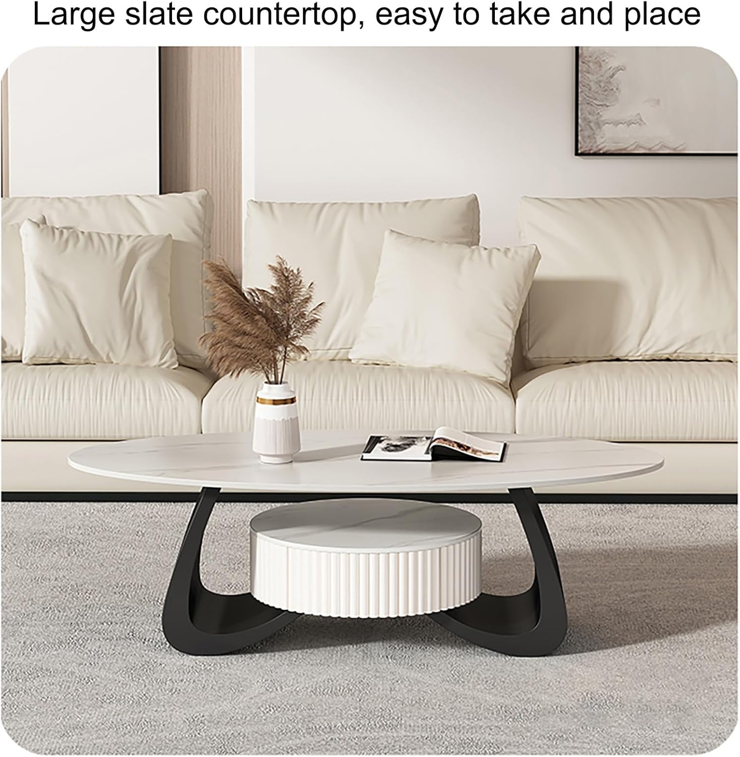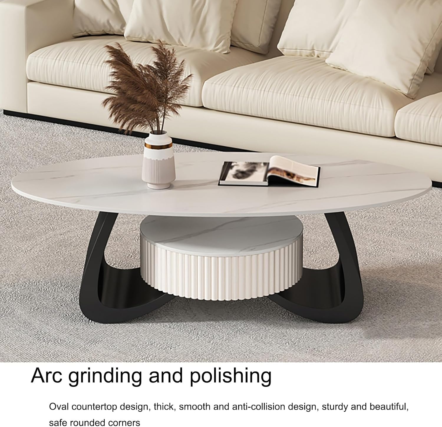 Coffee Table-Oval Table, Modern Coffee Table with Storage for Home Office, Simple Center Tables for Living Room, Sturdy and Easy Assembly, Easy Assembly