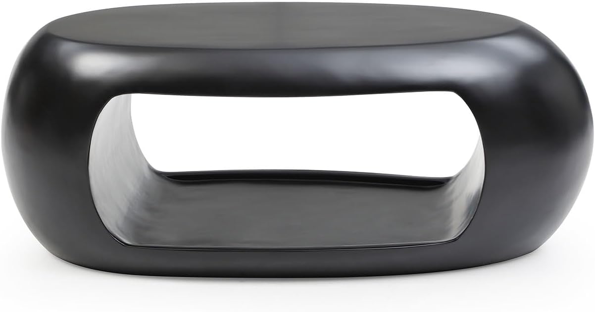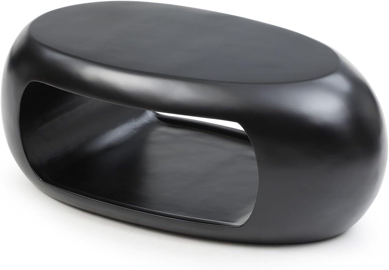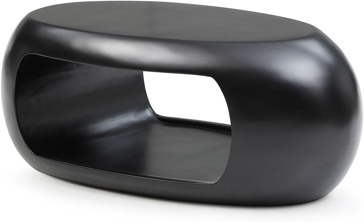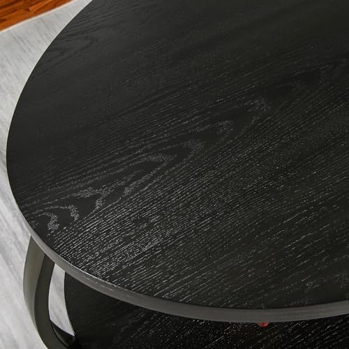 39.37" Coffee Table for Living Room, Modern Oval Coffee Table Farmhouse Center Table with Storage Shelf, 2-Tier Table for Living Room Small Space, Apartment, Office, No Need Assembly, Black