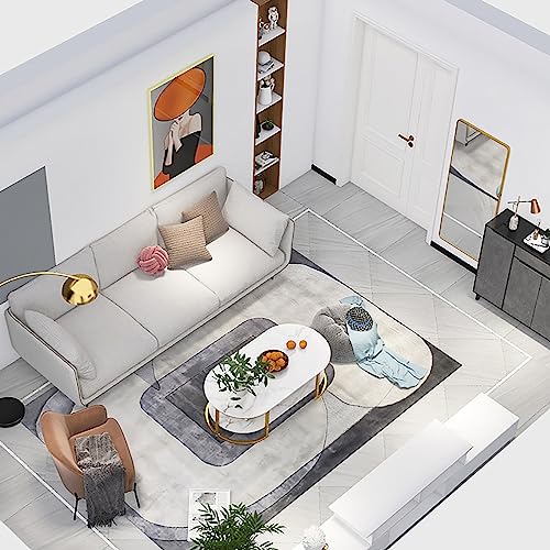 Modern Coffee Table Faux Marble Top,Oval Coffee Table,Wood Coffee Table with Open Storage,Minimalist Coffee Table Side Table for Livingroom Cocktail Table(100x60x42cm(39x24x17inch), Grey)