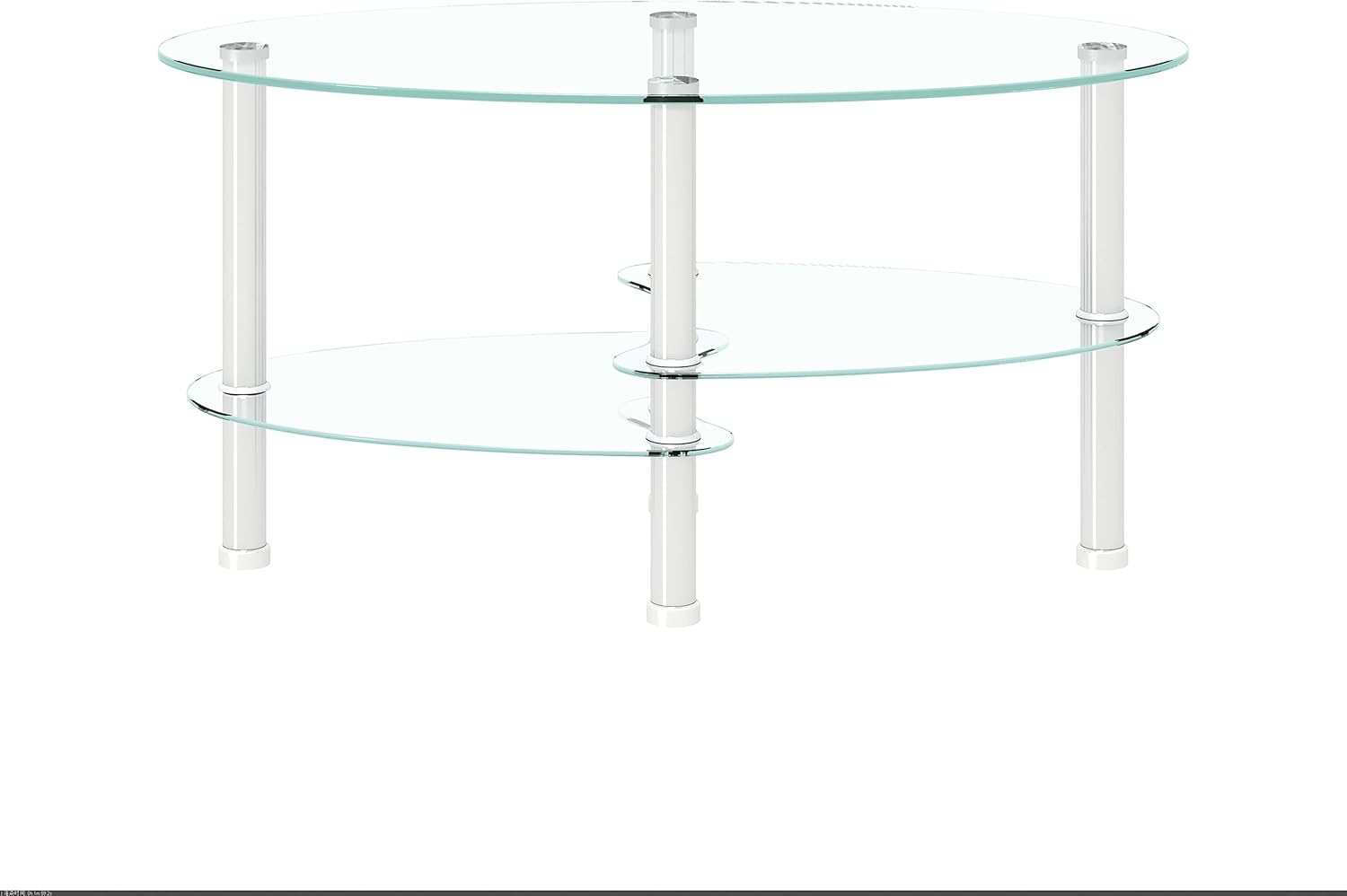Elegant Oval Tempered Glass Coffee Table with 3 Tiers and Steel Frame, 35.5 x 18 x 20 in, Clear