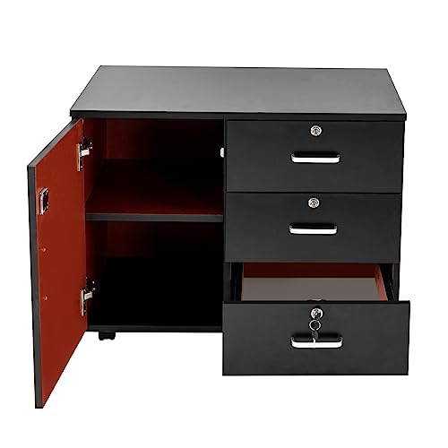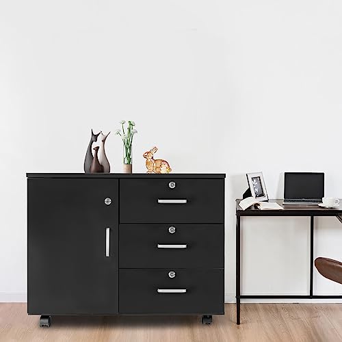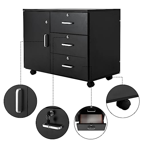 DYRABREST Filing Cabinets for Home Office,3-Drawer Mobile Storage Cabinet File Cabinet, Mobile Lateral Filing Cabinet with Lock Door,Printer Stand with Locking Drawers for Home Office (Black)