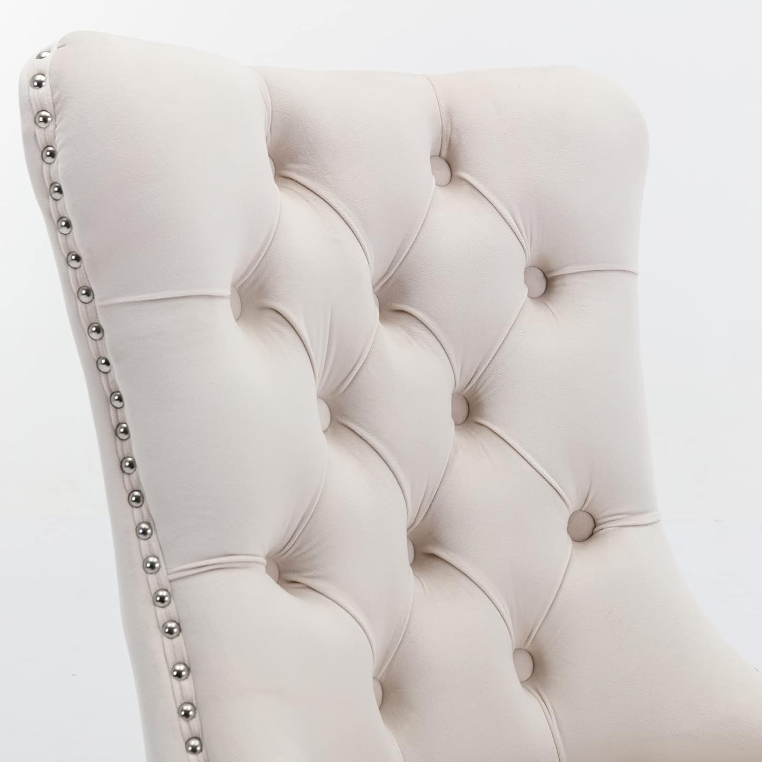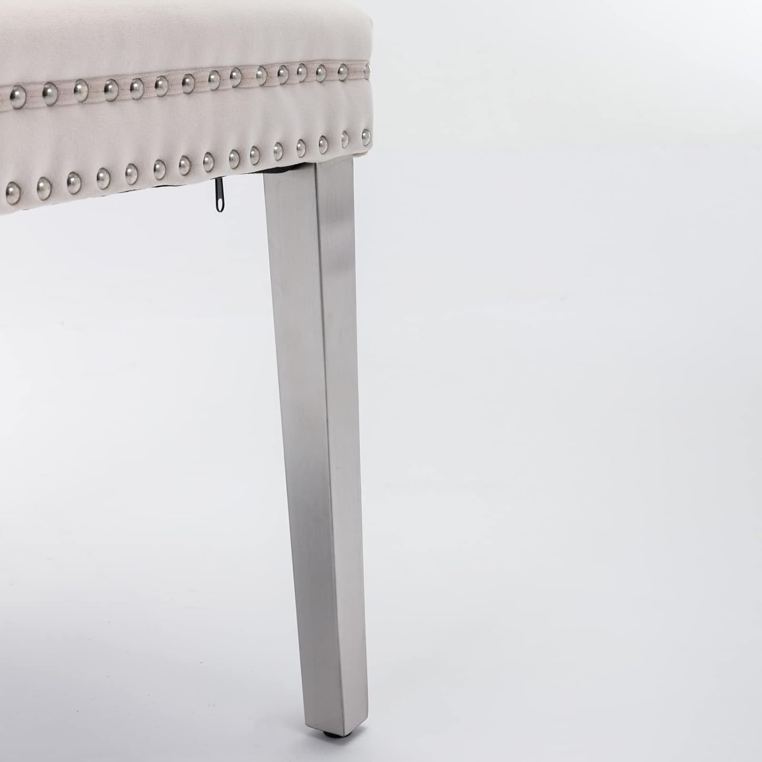 Solid Wood Dining Chair with Nailhead Trim,Velvet Upholstered W Stainless Steel Plating Legs,Set of 2,for Living Room,Apartemnt,Beige and Chrome, 37.5