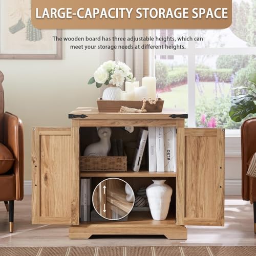 Farmhouse End Table with Charging Station,24" Large Side Table with Barn Door, Rustic Wood Square Nightstand Bedside Table with Adjustable Storage Shelf for Living Room, Bedroom,Blue 2-Pack