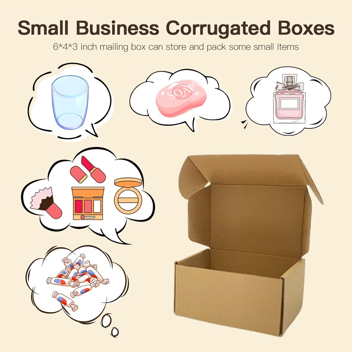 50 Pack 6x4x3 Inches Brown Corrugated Mailer Boxes -Corrugated Cardboard Mailing Boxes for Small Business Packaging and Gift Presentation