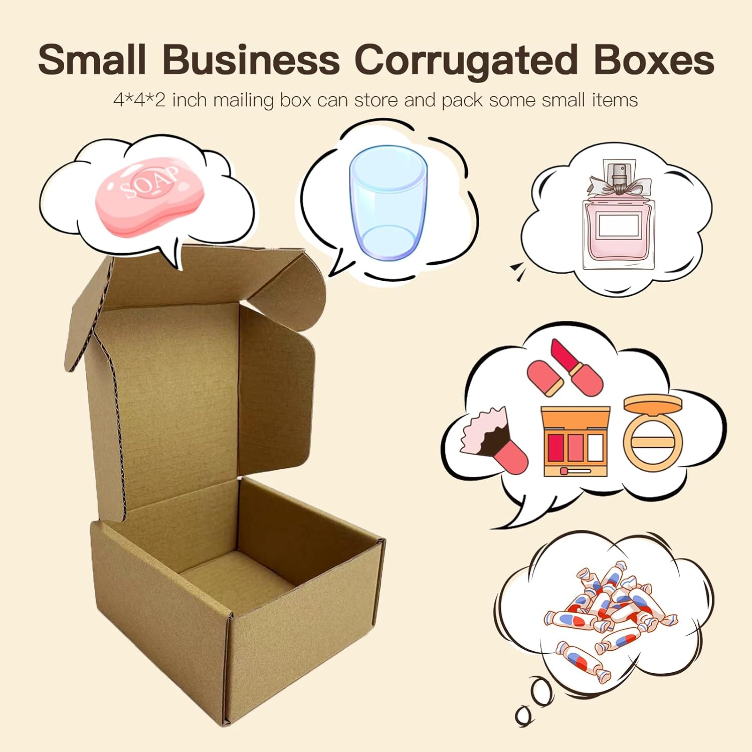 Rong Yang Tong 4x4x2 inch Small Shipping Boxes Pack 50, Brown Corrugated Cardboard Mailer Boxes for Packing Mailing Small Business Gift Packing