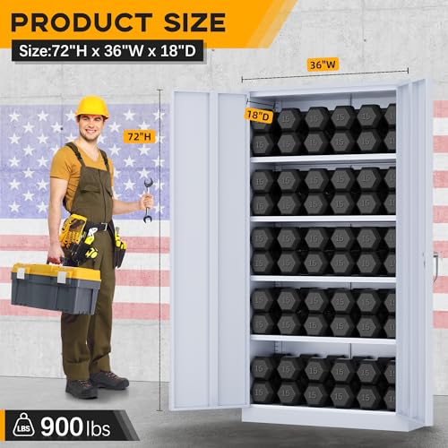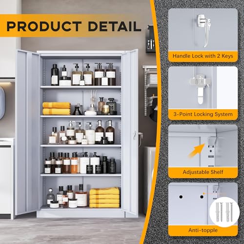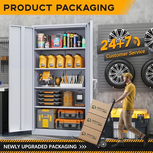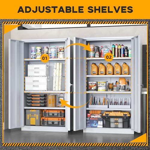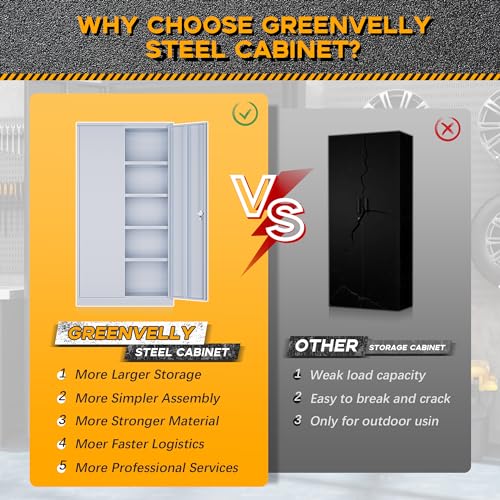 Greenvelly Metal Garage Storage Cabinet with Wheels, 75” Black Steel Rolling Garage Cabinet with 2 Door Lock and Adjustable Shelves,Locking Garage Storage Cabinet for Garage Home Office Utility Room