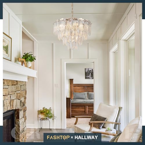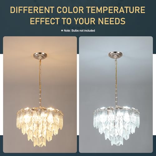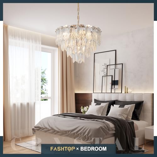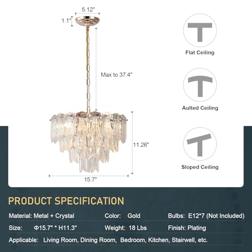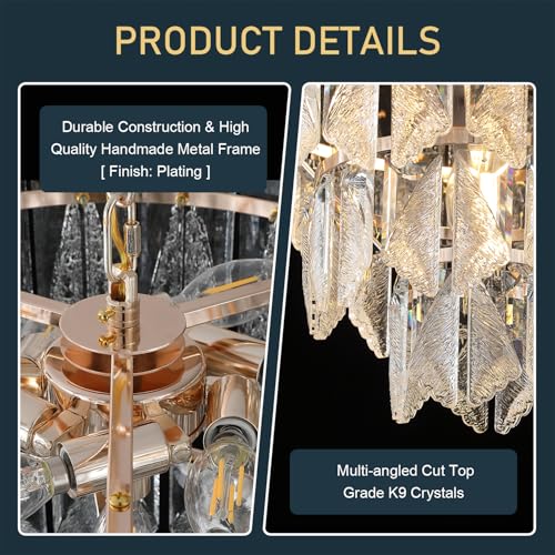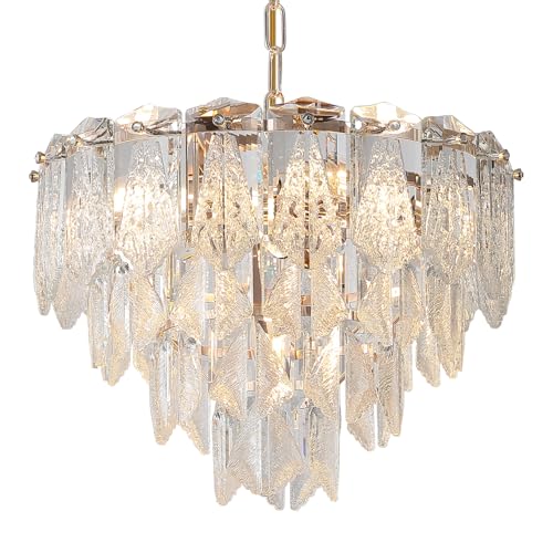 20" Modern Crystal Chandelier 9-Light Gold Chandelier Light Fixtures 5 Tiers K9 Crystal Round Lighting for Dining Room Bedroom Kitchen Island Living Room Foyer Entryway, E12