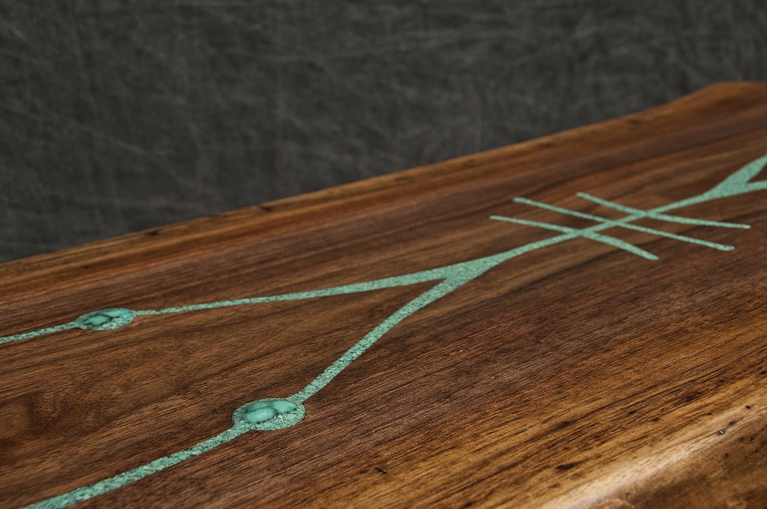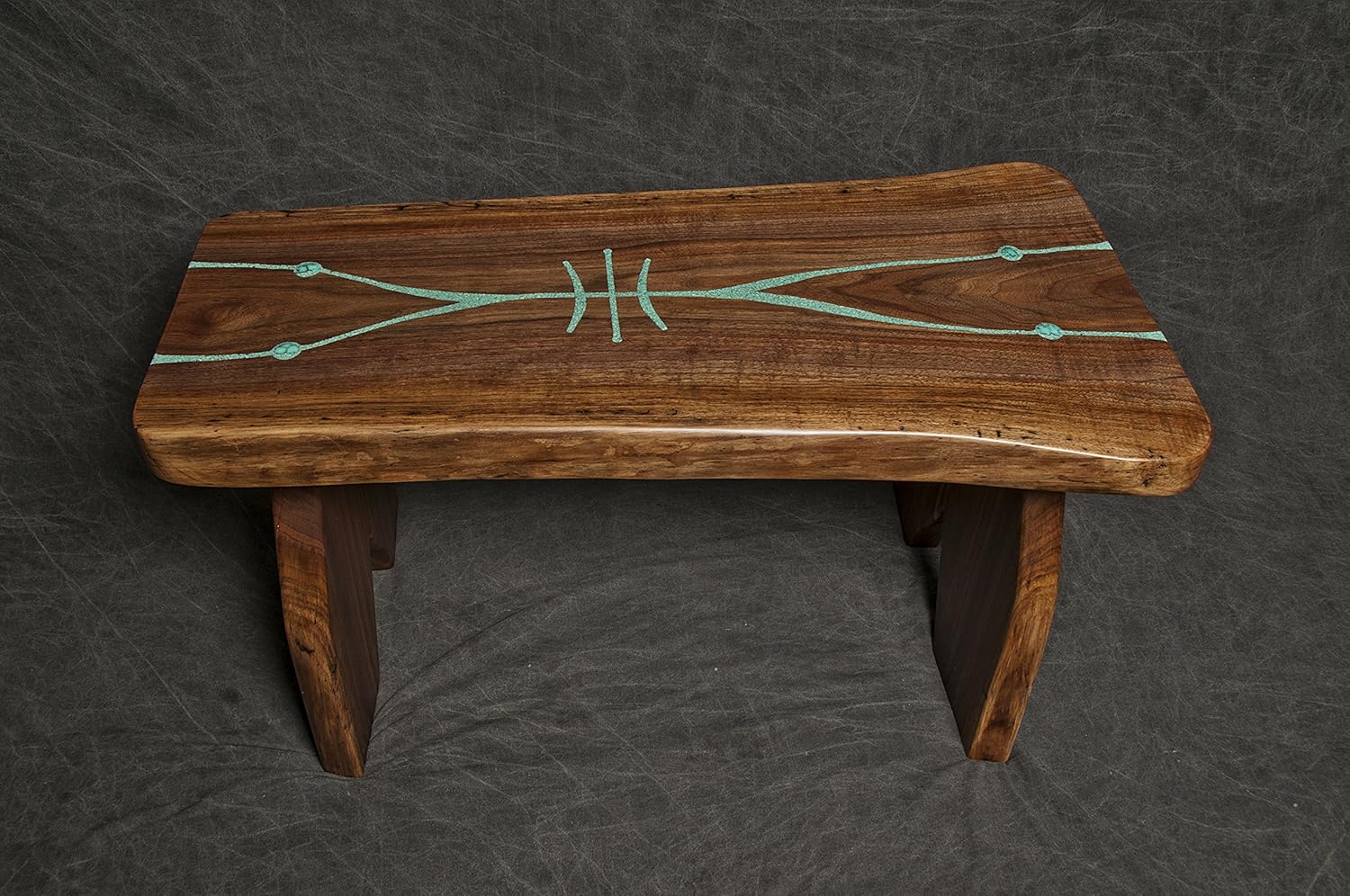 Black Walnut Slab Bench with Living Edges and Free Hand Turquoise Carving/Inlay"Spirit Chaser/Protection"