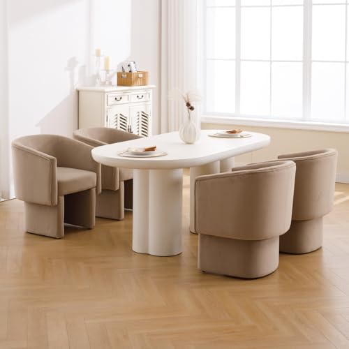 DUOMAY Modern Upholstered Dining Chairs Set of 6 - White Sherpa Side Chair with Cushioned Seat and Barrel Backrest - Elegant and Comfortable Dining Room Accent Chair Reception Chair