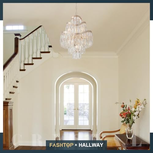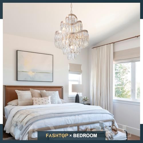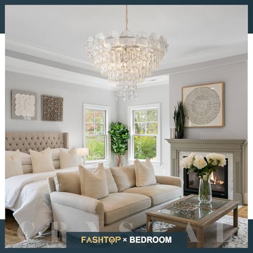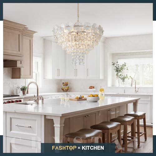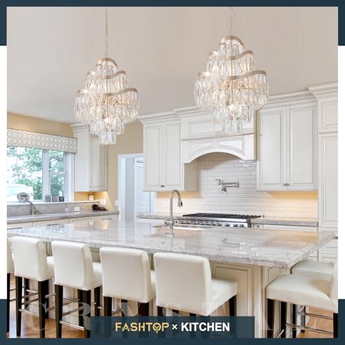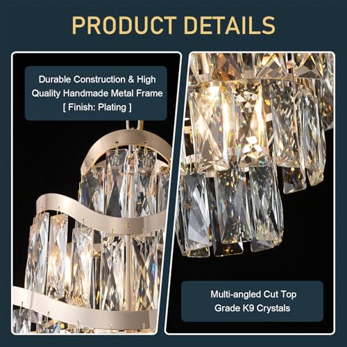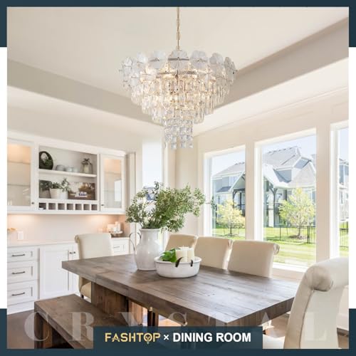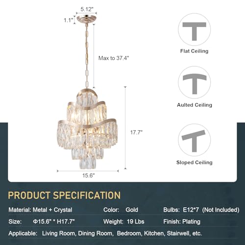 6-Tier Luxury Gold K9 Crystal Chandelier for Dining Room 7 Lights Pendant Chandelier Light Fixtures 16" Modern Chandelier for Kitchen Island Bedroom Foyer Entryway, E12
