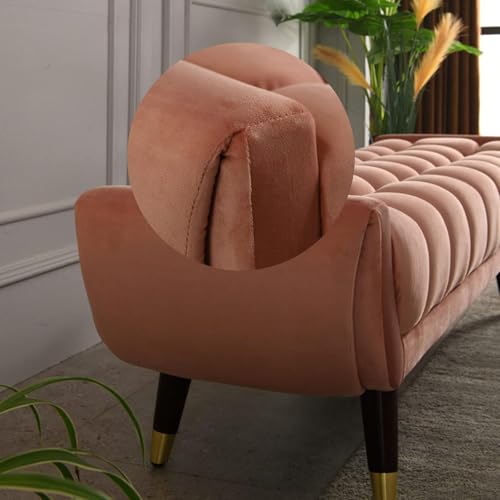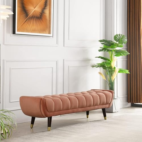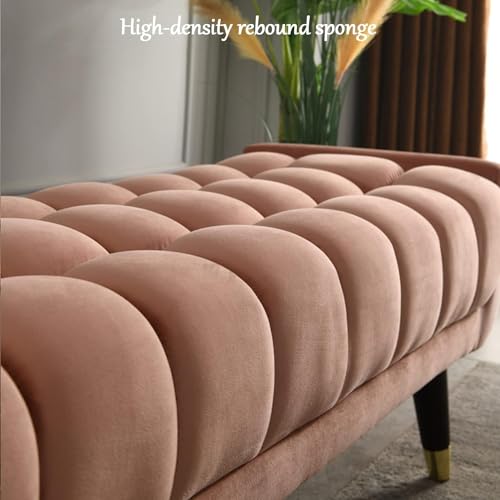 Ottoman Bench Velvet Button Tufted Ottoman Bench Rectangular Upholstered End of Bed Bench with Gold Tipped Legs Luxurious Entryway Bedroom Footstool(Dark Gray,80x45x45cm)
