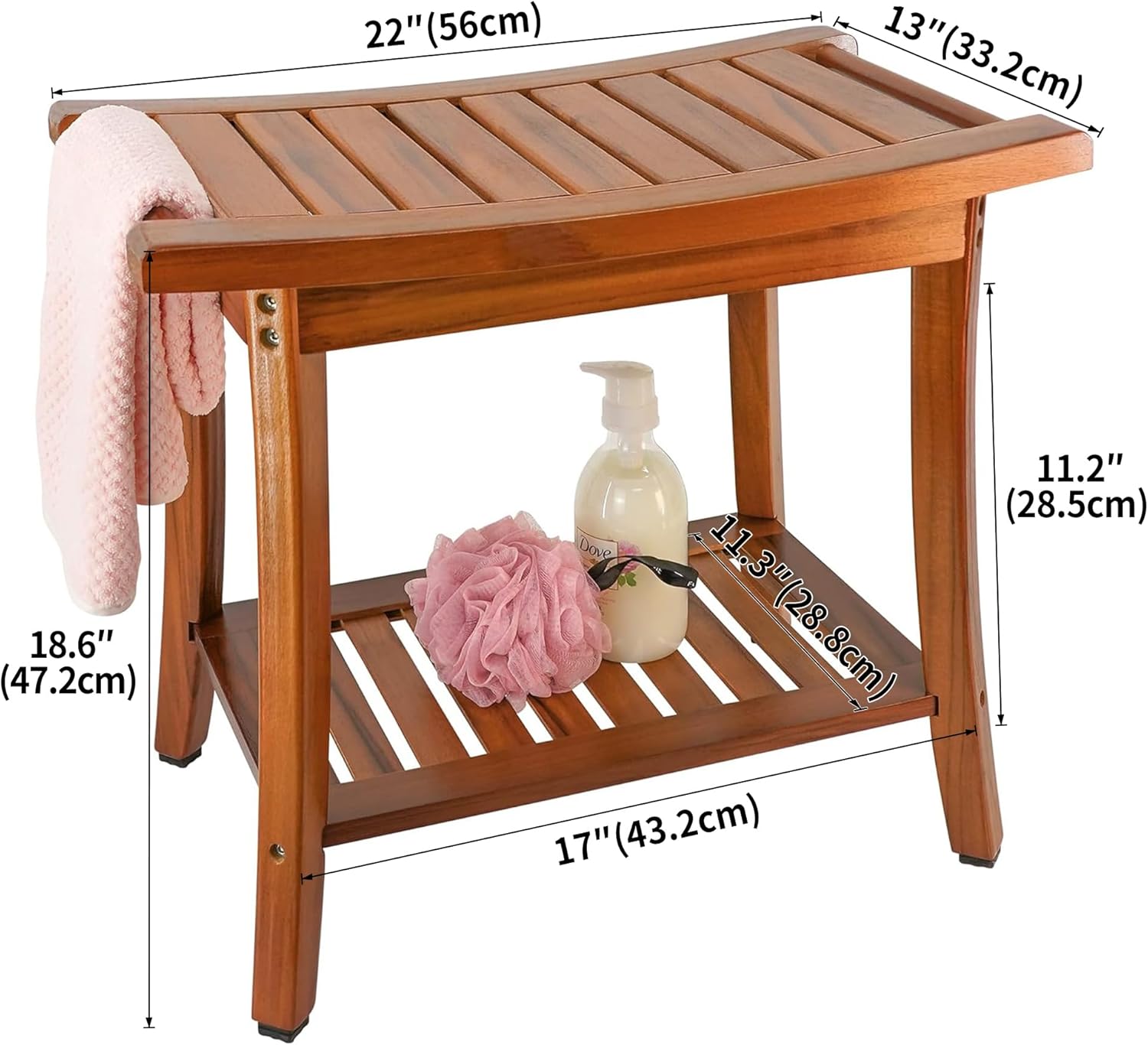 Utoplike Teak Shower Bench Seat with Handles,(24"x18") Teak Wood Bath Mat, Teak Shower Caddy Corner
