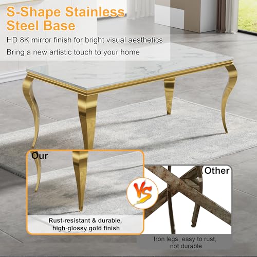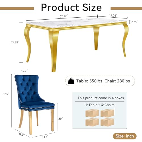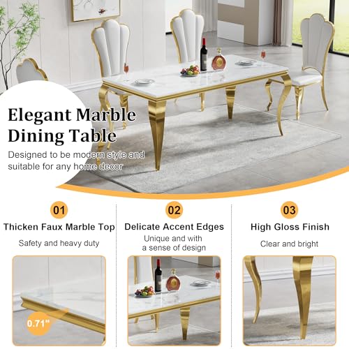 Marble Dining Table Set for 4, Dining Room Table Set for 4, Modern Dining Table Set with 70" White Gold Marble Dining Table & Green Velvet Chairs, 5 Piece Dining Table Set for Kitchen Dining Room