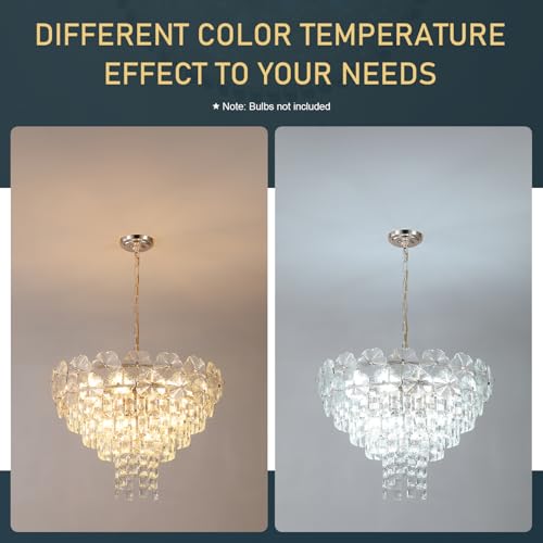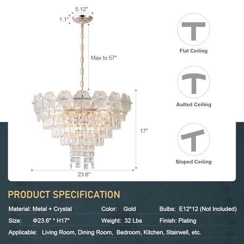 Modern Flower Crystal Chandelier 20" Gold Light Fixtures 9-Light Chandelier 5 Tiers K9 Crystal Round Lighting for Dining Room Bedroom Kitchen Island Living Room Foyer Entryway, E12