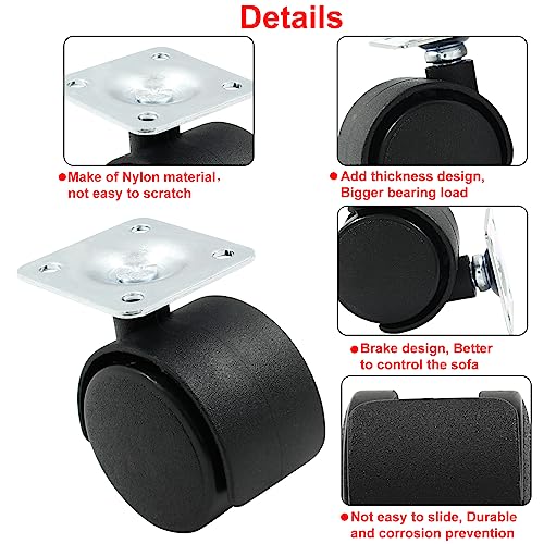 4 Pack 2 Inch Caster Wheel Replacement Office Chair Caster Wheel Furniture Wheel Plate Swivel Cart Casters with Braking for Furniture Couch Office Chair