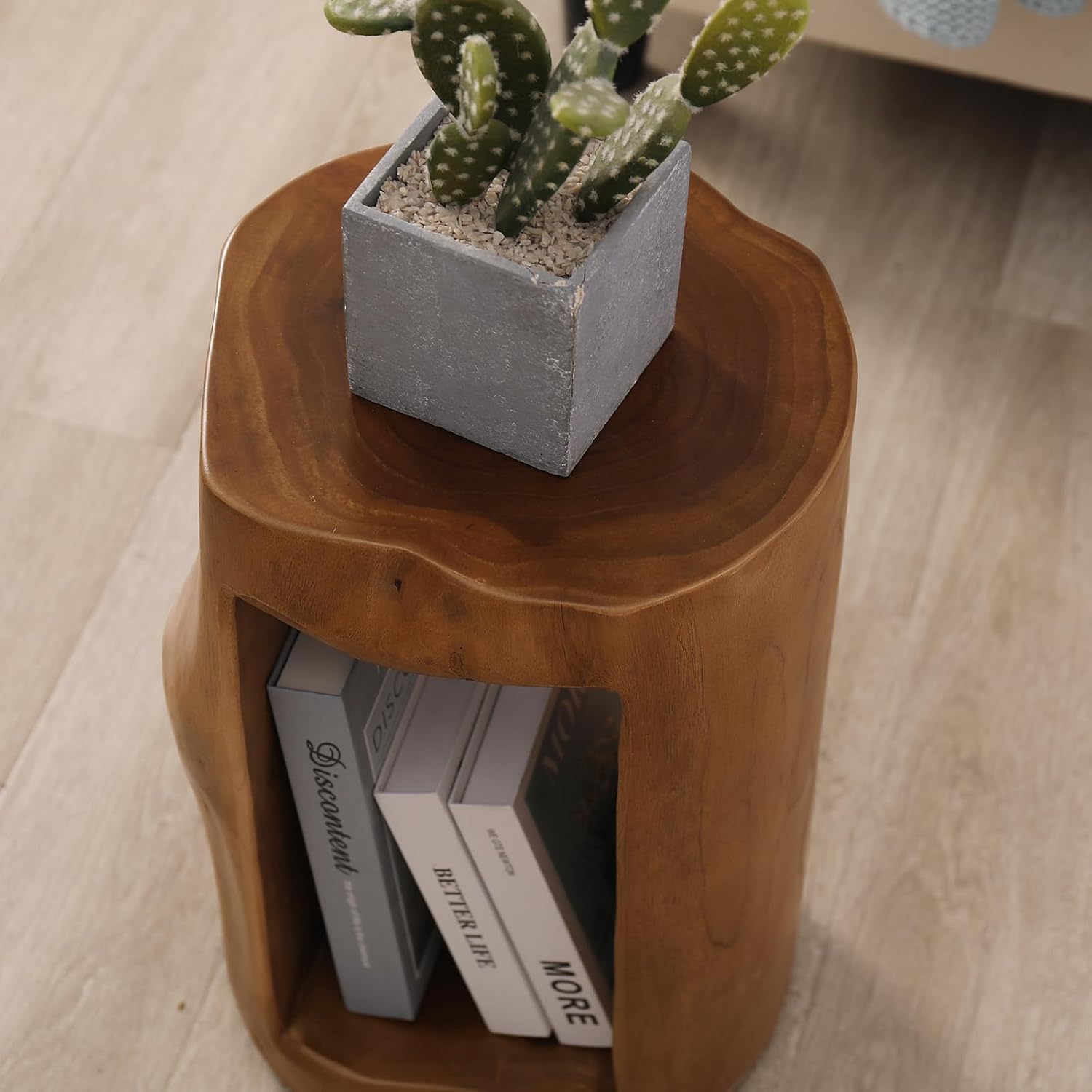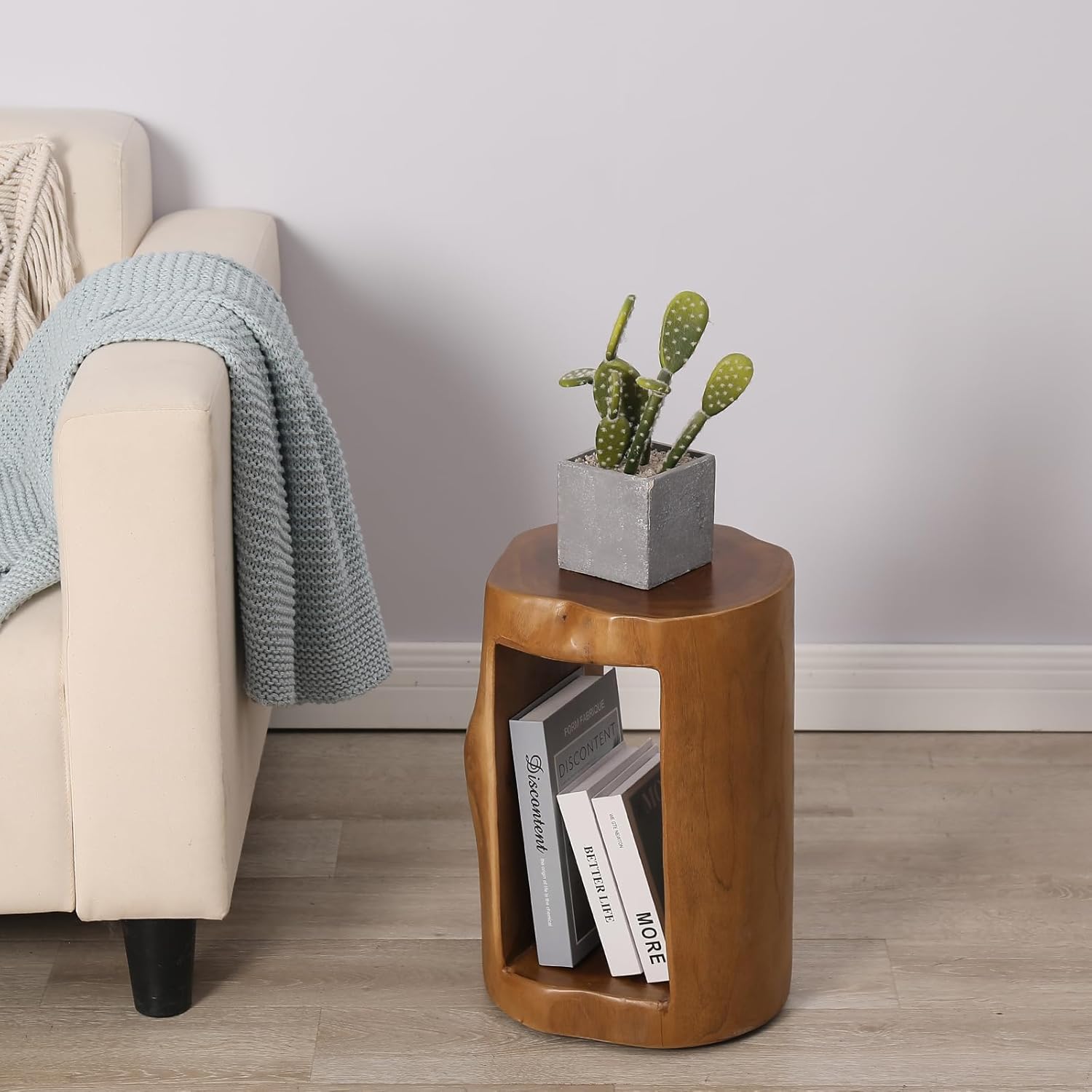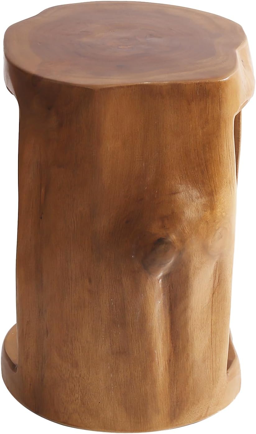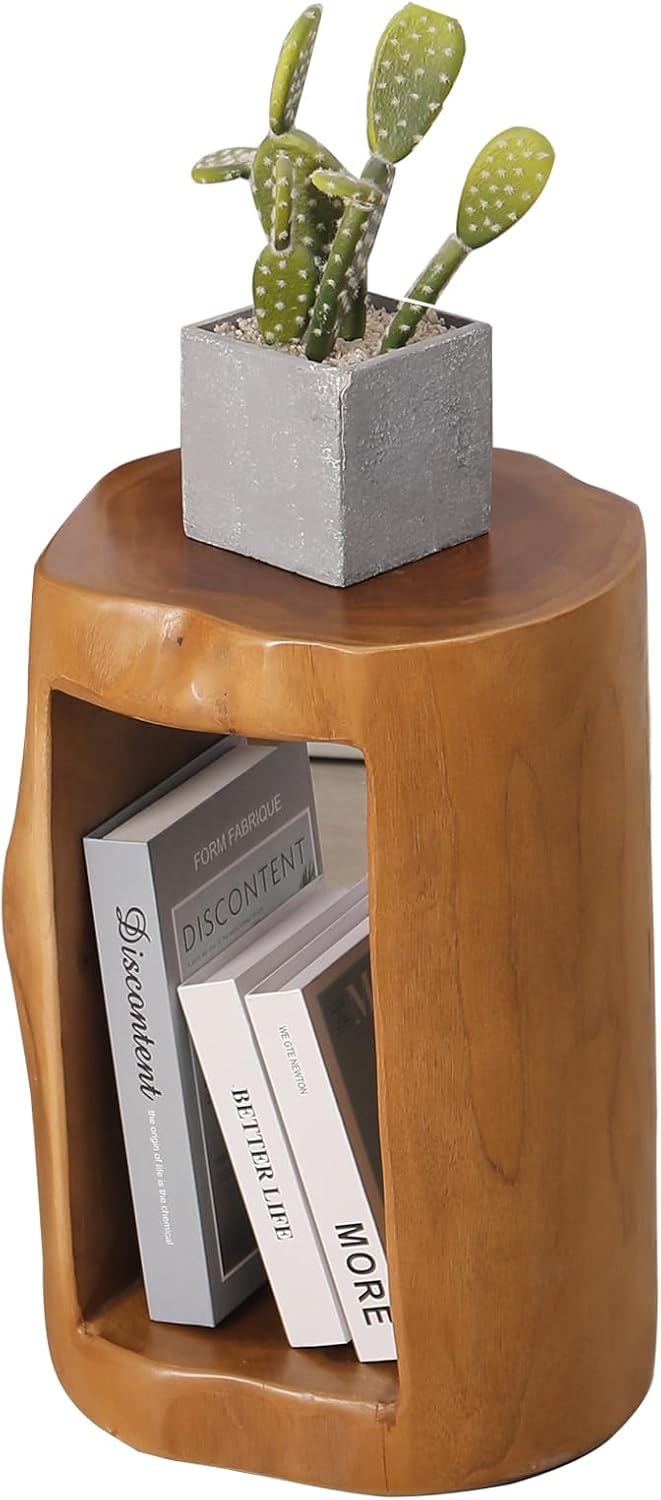 Tree Stump Stool, Teak Live Edge Side Table,Plant Holder, Tree Accent Table, Round Wood End Table,Nightstand, 16" Tall