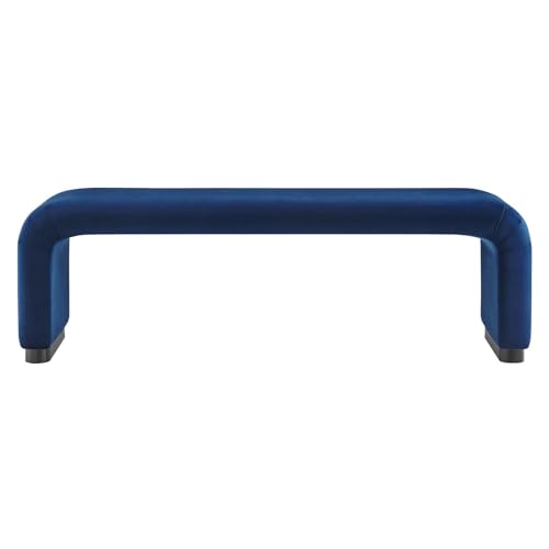 Modway Koda 60" Performance Velvet Waterfall Long Bench in Black Moss Green, 60Inches