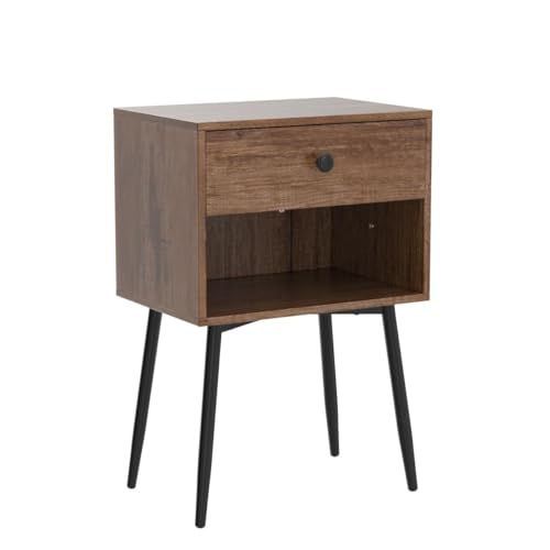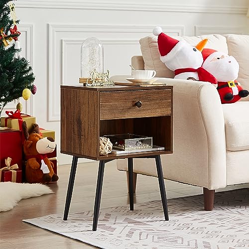 VECELO Nightstands Set of 2 Industrial 2-Tier Night Stand/Side Drawer, Wood Mid Century End Tables for Small Places, Bedrooms, Living Room, Home, farmhouse, Gray