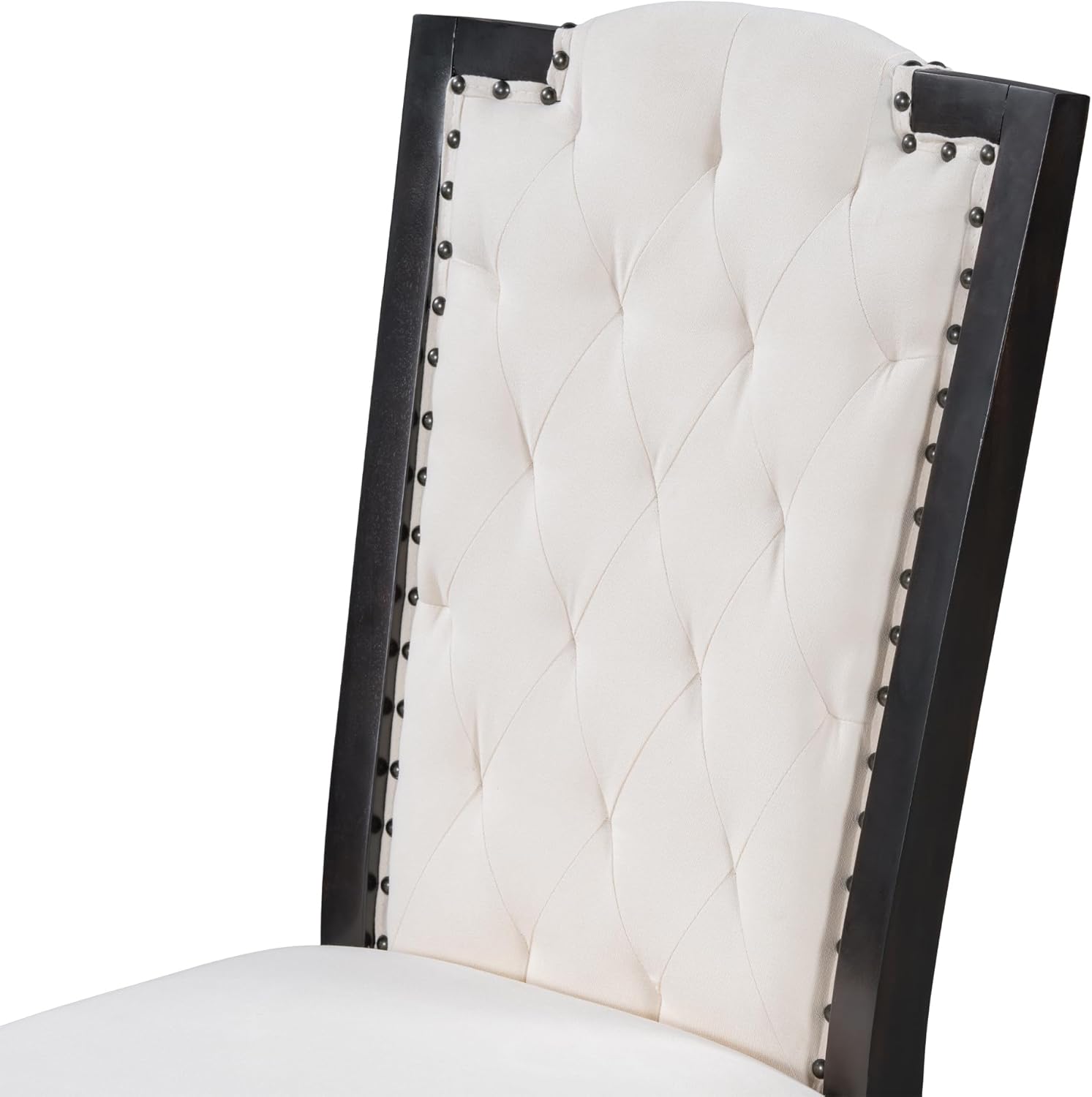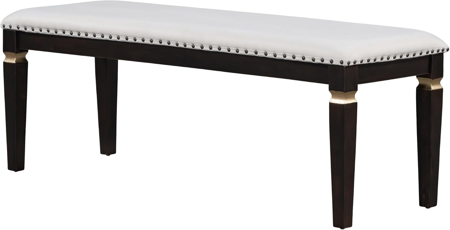 Glass 62.7" Retro & Elegant Dining Set for 5-6, Rectangular Table & 4 High-Back Tufted Chairs & 1 Bench for Kitchen Living Room, Rivet Edges Design, Espresso