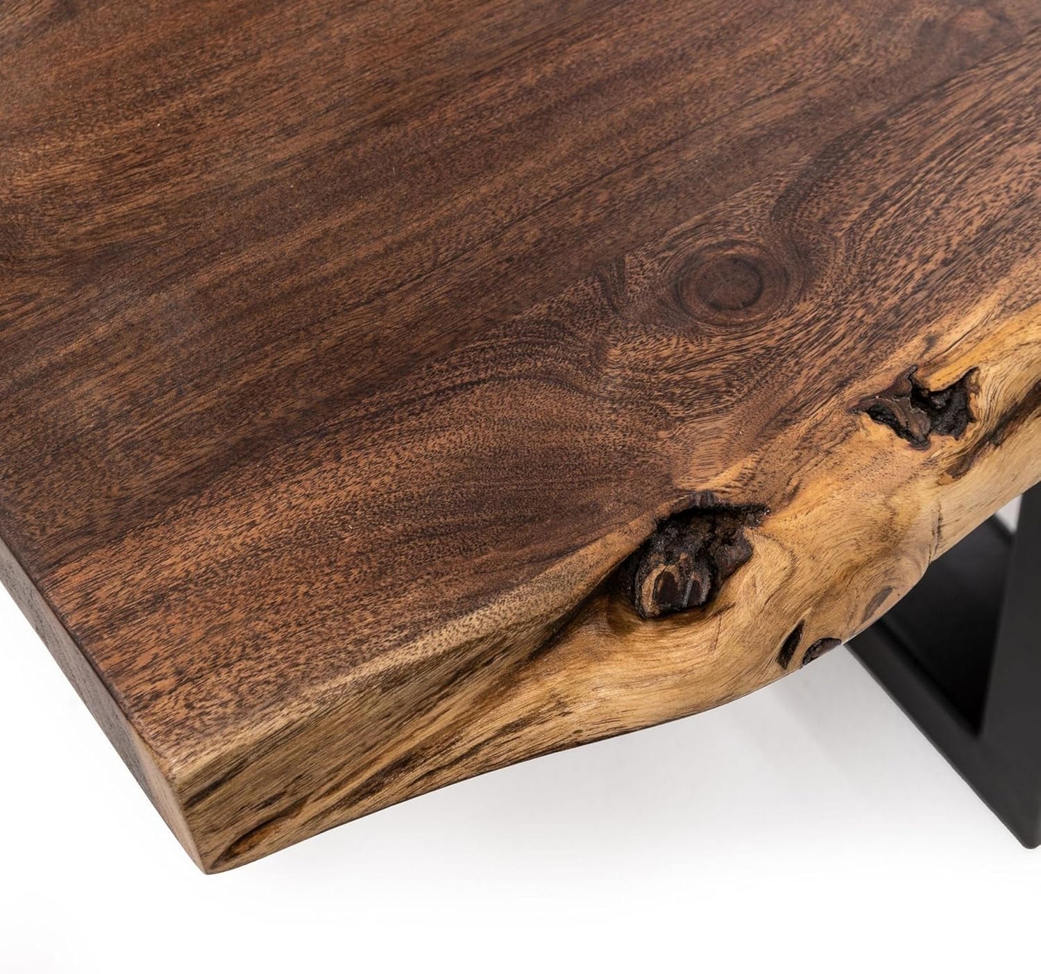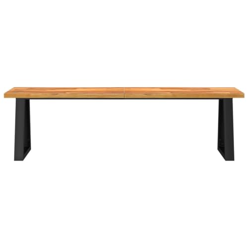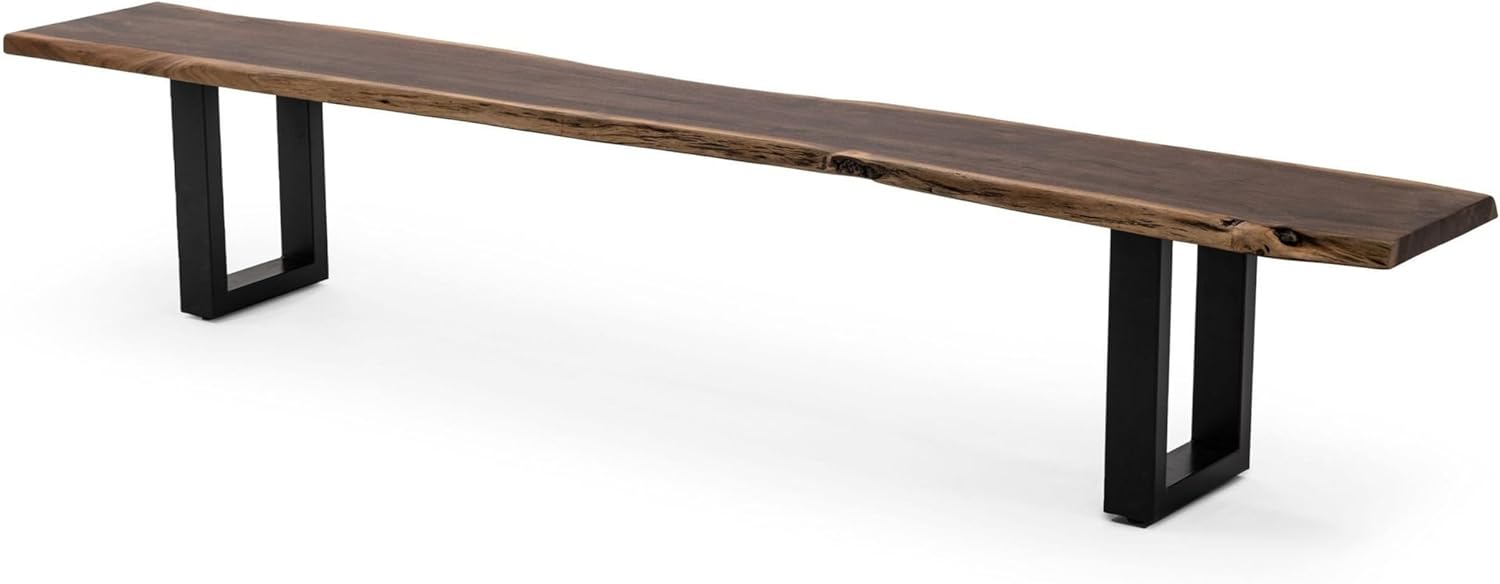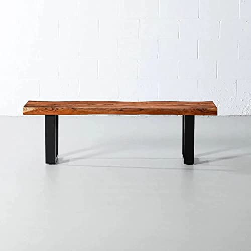 Wooden Bench Seating Chair with Live Edge, Solid Wood Live Edge Dining Bench with Metal Frame, 63" Solid Wood Acacia