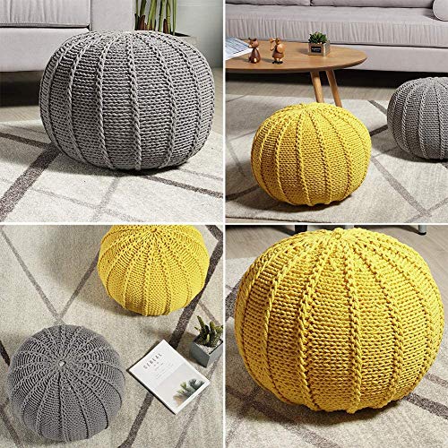 Footstool round Hand Knitted Pouf Ottoman,Cable Style Cotton Braided Rope Floor Ottomans Comfortable Seat Footstool Storage Footstool/a/48 * 48 * 35Cm(19 * 19 * 14Inch)