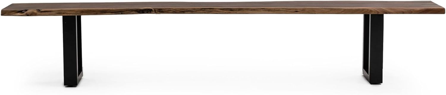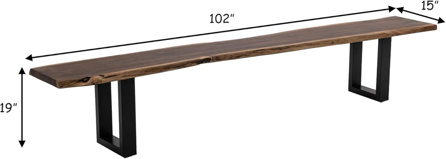 Benjara CID Xue 102 Inch Dining Bench, Live Edge Rectangular Top, Metal, Brown and Black