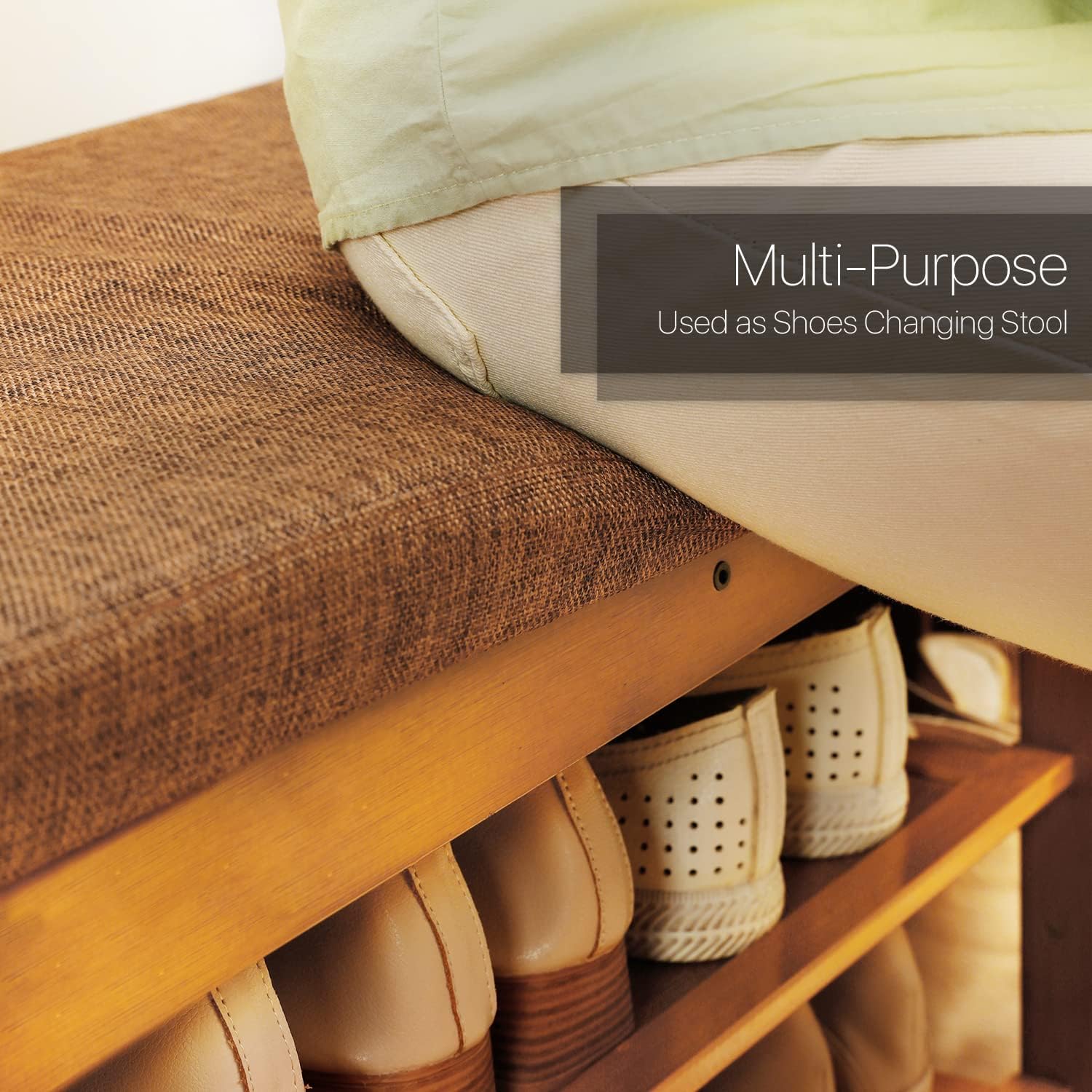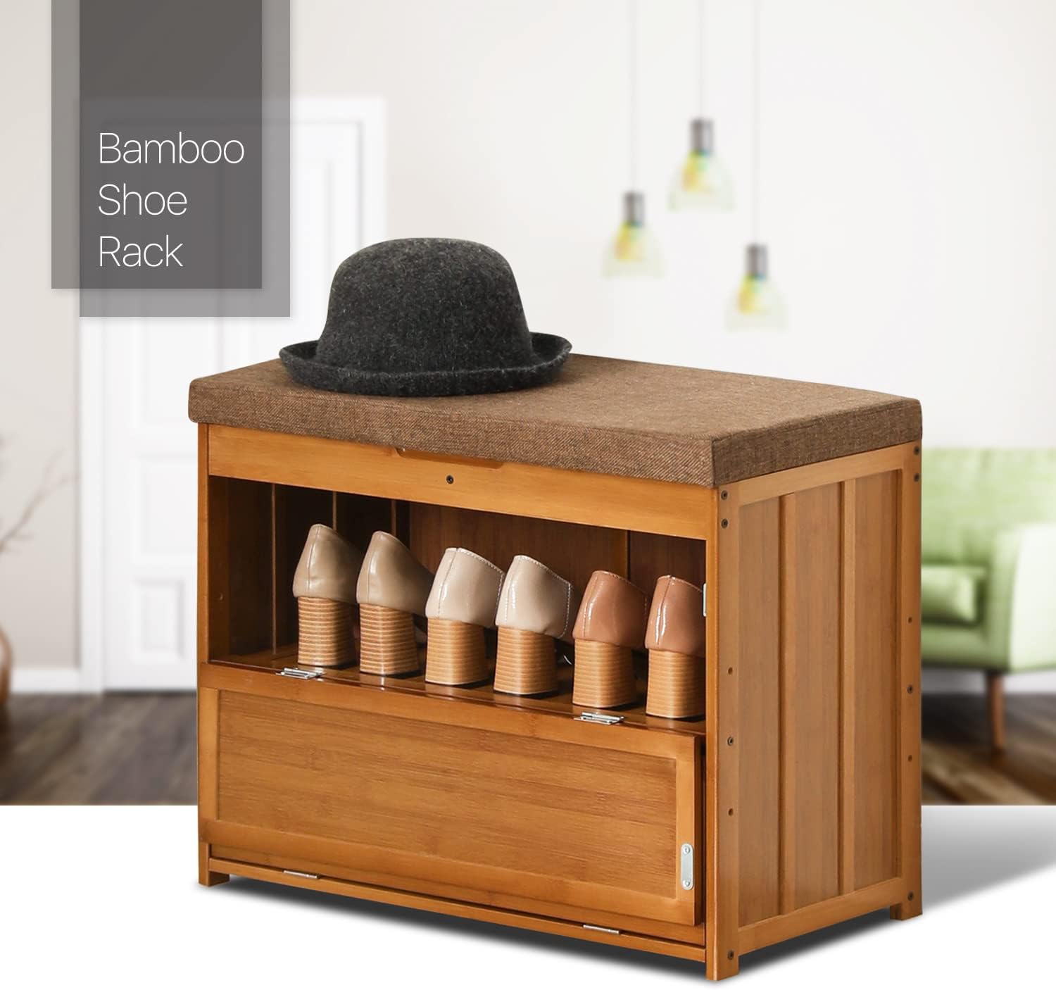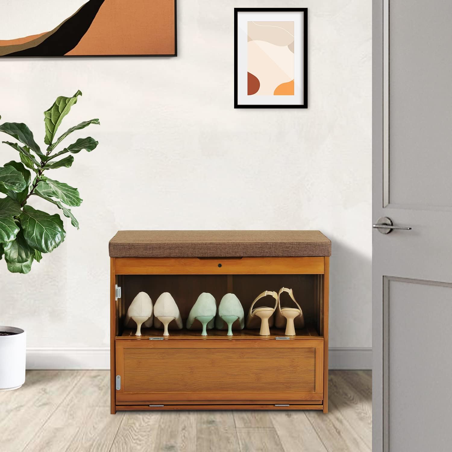 MoNiBloom Shoe Bench Entryway with Storage, Bamboo Shoe Rack Organization with Doors for 6-10 Pairs Hallway Bedroom Living Room Garden, Brown
