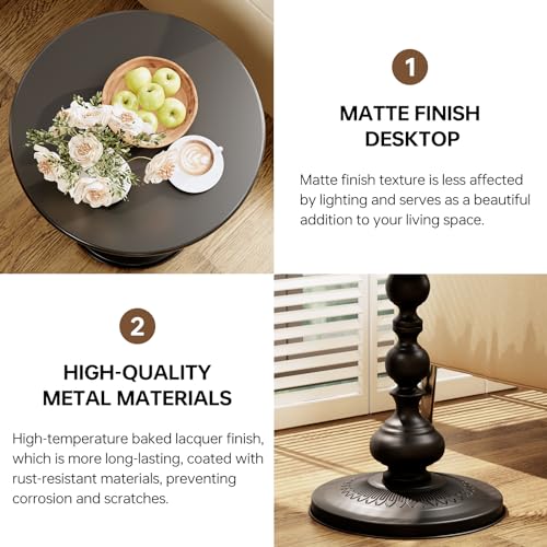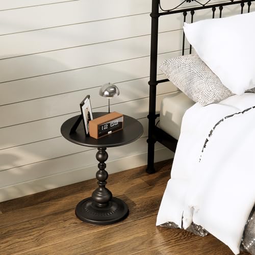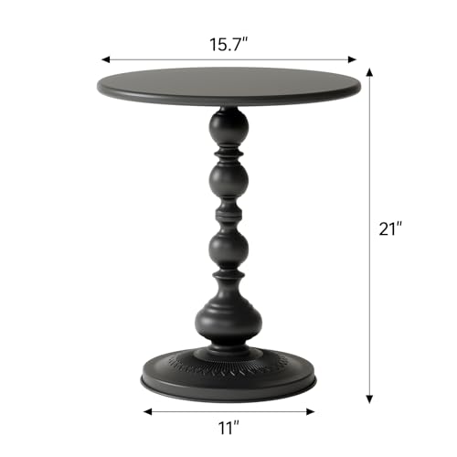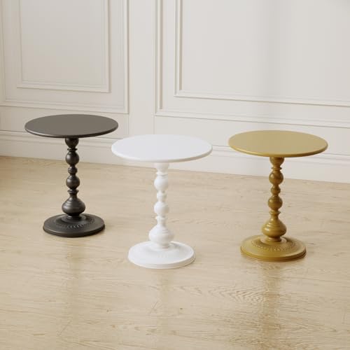 XIV Metal Small Round Side End Table, Vintage Bright Coffee Drink Cocktail Table, Small Accent Pedestal Table for Living Room Corners and Small Spaces, 21” Height (Bright White)